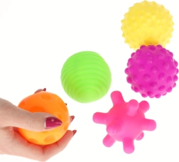 Igal pallil on ainulaadne pind (väikesed ja suured nupsud, sooned, vagud, „siil“), mis toetab lapse kompimistaju ja uudishimu.