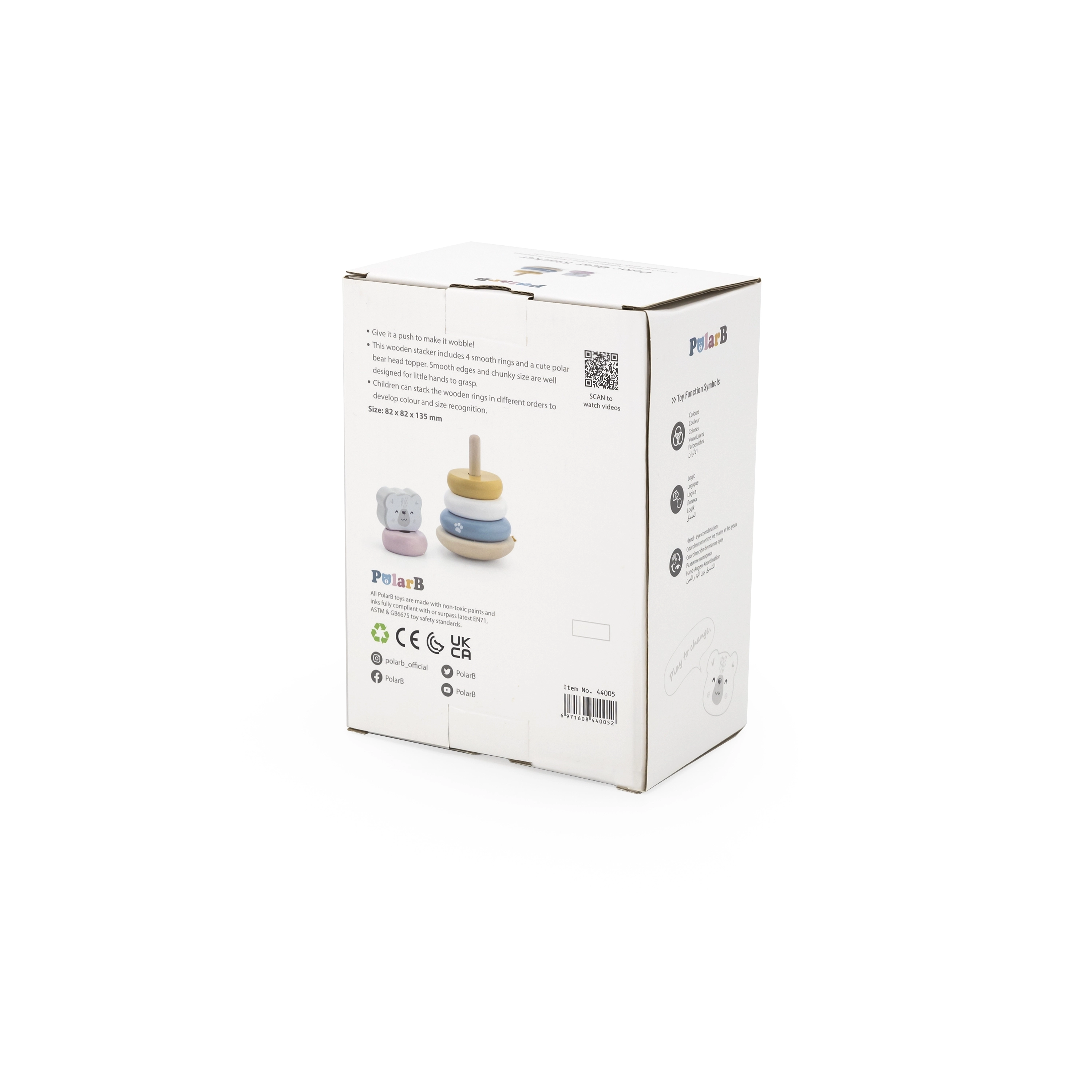 Puidust hariv püramiid jääkaru motiiviga on ideaalne mänguasi kõige pisematele. Püramiidil on kuus rõngast eri suuruste ja värvidega, sealhulgas üks peamine rõngas karu peaga. Tänu vastupidavale puidust konstruktsioonile on mänguasi mitte ainult ohutu, vaid ka kauakestev.