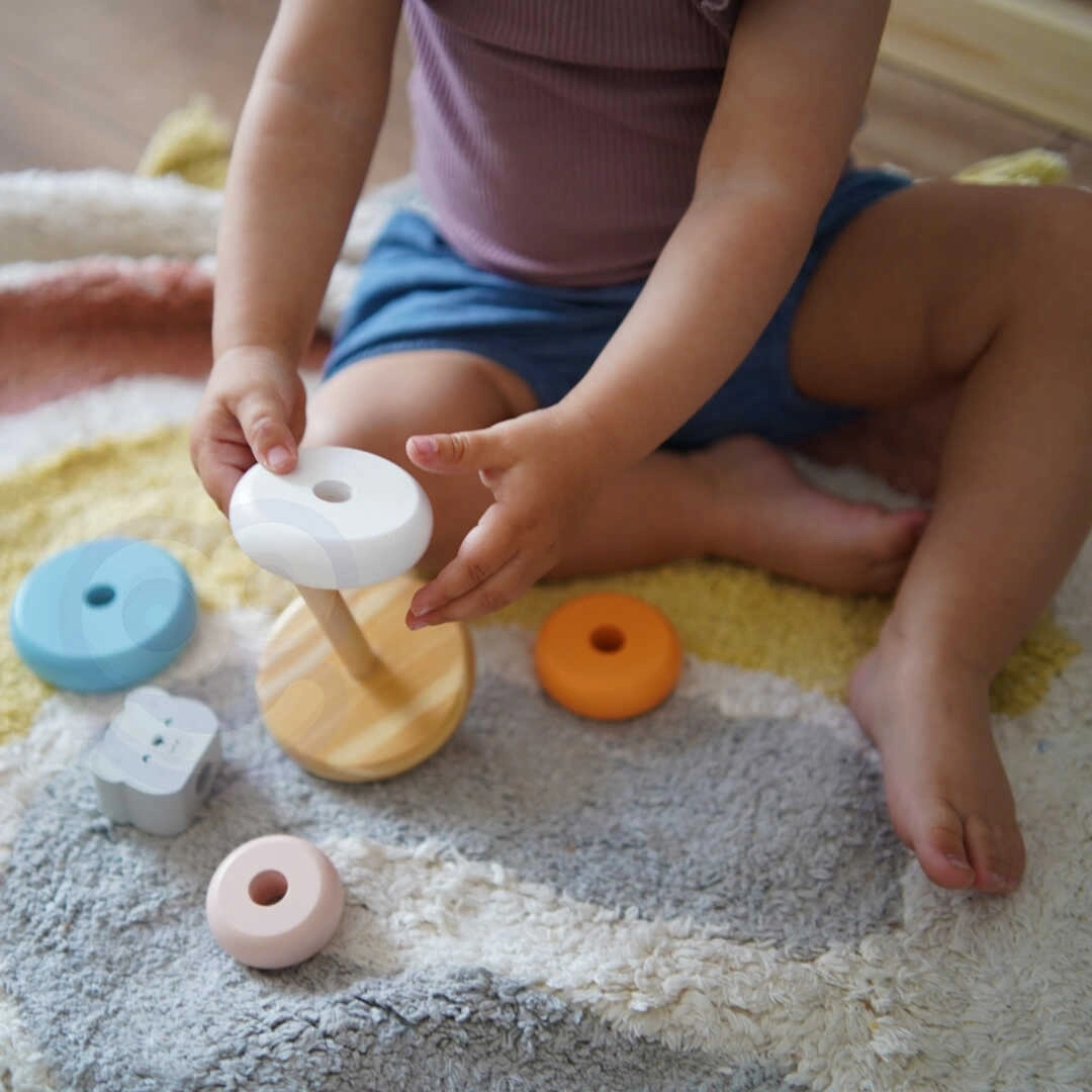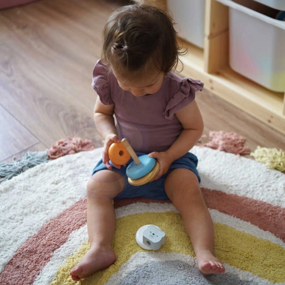 Rõngaste asetamine alusele pakub lastele rõõmu ning arendab nende koordineerimisoskusi ja loogilist mõtlemist. Lapsed õpivad ka värve eristama ja töötama erinevate kujunditega.