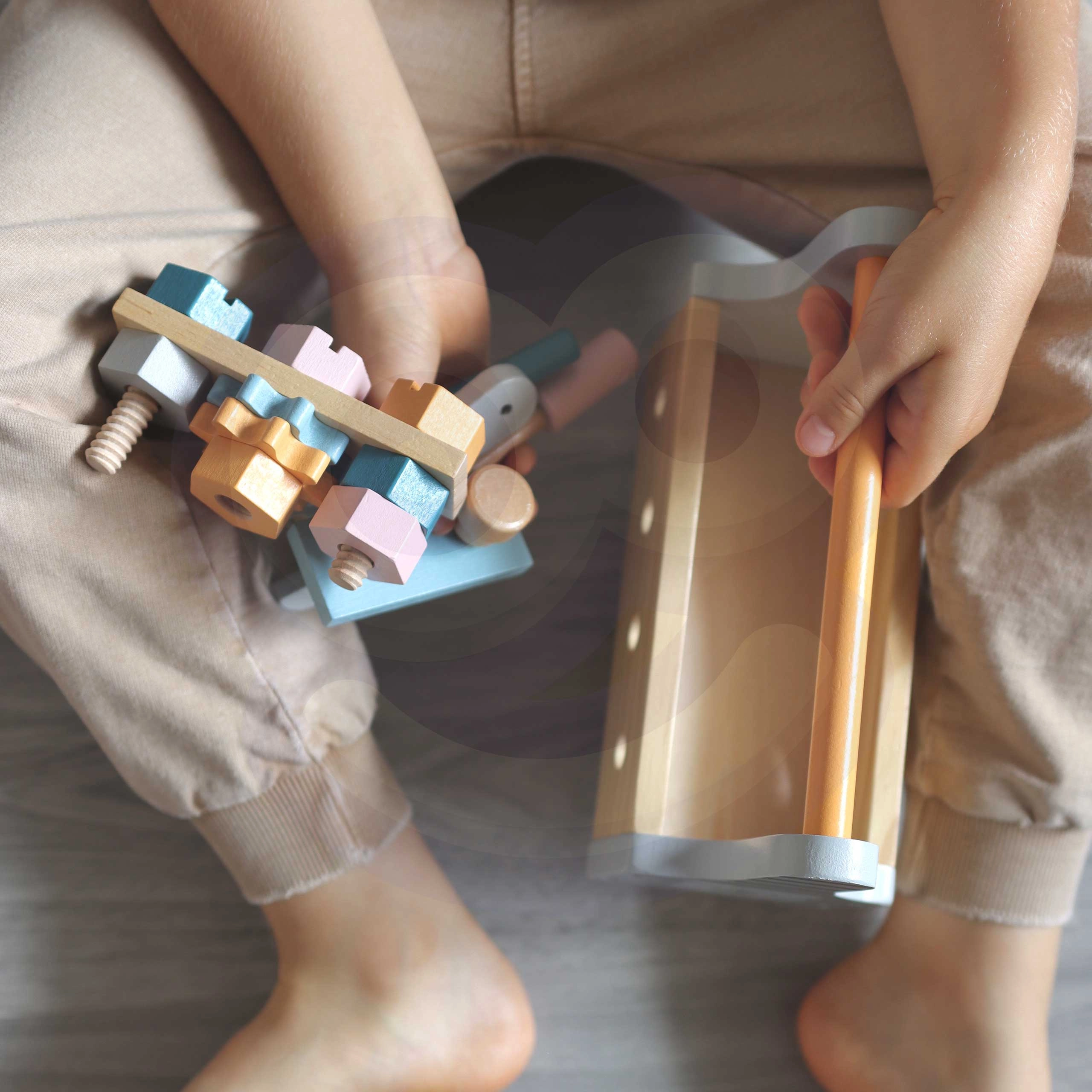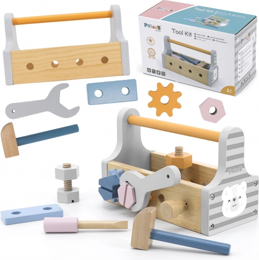 VIGA kaubamärgi Polar Bear sarja puidust tööriistakapp toob lasteni loovusrõõmu ja praktiliste oskuste õppimise. Komplektis on kõik, mida on vaja tundideks ettekujutusmänguks ja peenmotoorseteks tegevusteks.