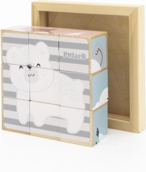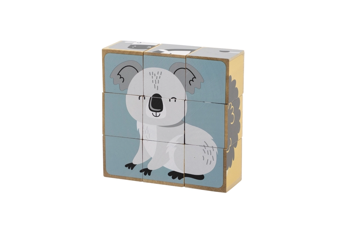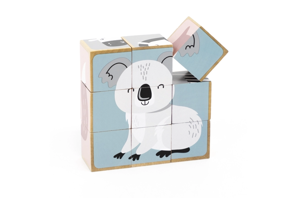 Avasta ajatu puidust mänguasi, mis pakub lastele nii rõõmu kui ka õpivõimalusi. 9 klotsi abil saad kokku panna kokku 6 erinevat loomamotiivi – näiteks karu, rebase, koala, sebra või siili. Iga klotsi külg kuulub erinevale pildile, nii et lapsed harjutavad tähelepanu, kannatlikkust ja ruumilist kujutlusvõimet.