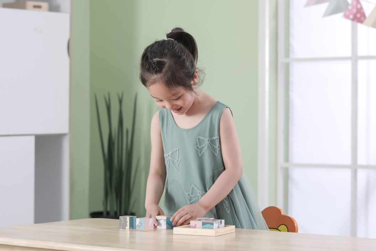 Iga klotsi külg kuulub erinevale motiivile. Lapsed naudivad karu, koala, rebase, siili, sebra ja teiste loomade kokkupanemist ning harjutavad samal ajal loogilist mõtlemist.