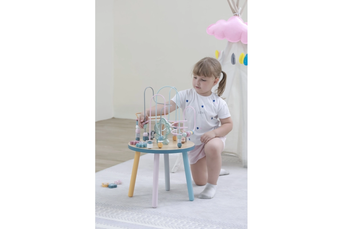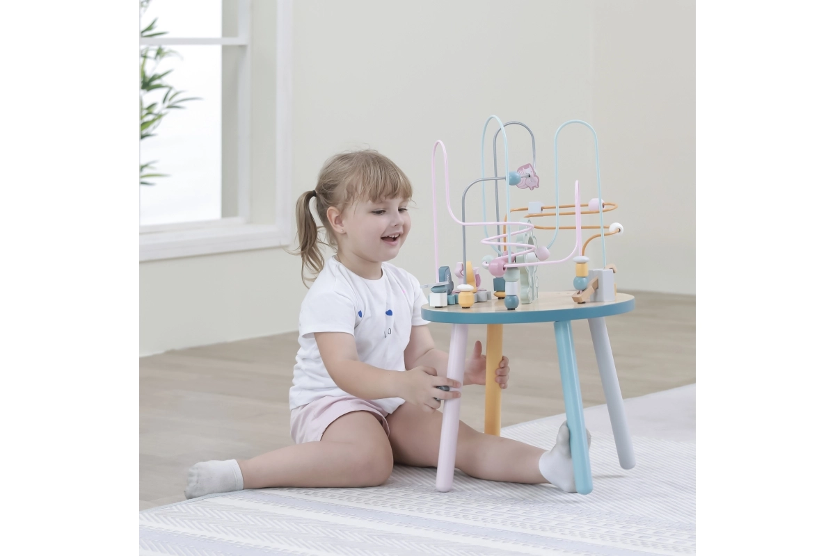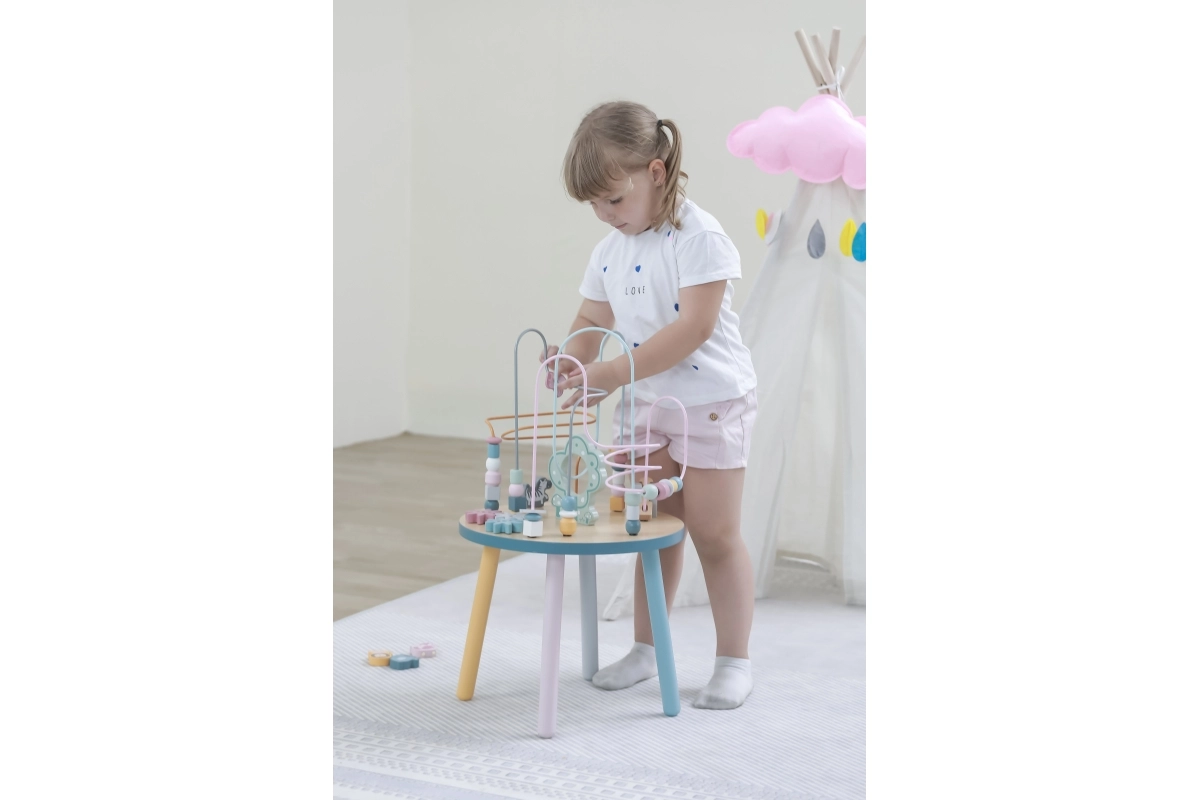 Helmemaailm vastupidaval puidust laual kutsub lapsi avastama. Värvilised kujundid ja armsad loomakesed (karu, rebane, siil) motiveerivad sõrmekesi liikuma, harjutavad täpset haaramist ning innustavad oma lugusid looma. Ideaalne valik koduseks “montessori”-stiilis mängides õppimiseks, mis arendab kannatlikkust, keskendumist ja kujutlusvõimet.