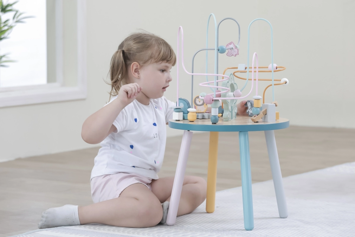Helmeste ja figuuride liigutamine metallist silmustel õpetab last täpset haaret, tugevdab sõrmi ning parandab silma–käe koordineerimist mängulisel moel.