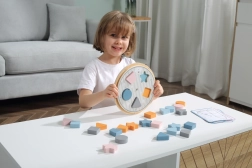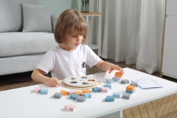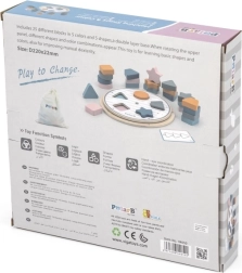 Avastage lõbus ja hariv mäng, millega lapsed omandavad loomulikult kujundite ja värvide eristamise. Pööratav alus võimaldab muuta värvimustreid, nii et mäng püsib alati kaasahaarav ja mitmekesine. Näidiskaardid juhendavad lapsi samm-sammult ja arendavad nende loogikat, keskendumist ja silma-käe koordineerimist.