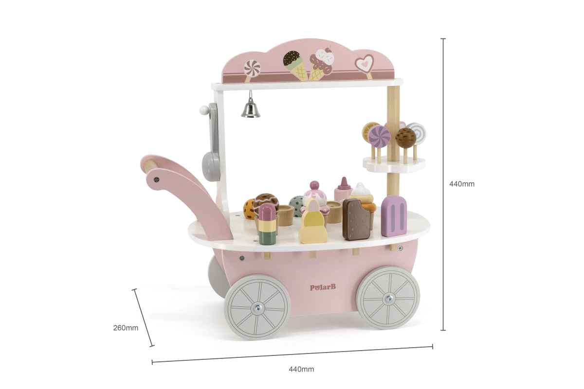 Laste 3‑ühes puidust kiosk POLARB VIGAlt muudab iga toa magusaks kuningriigiks. Tänu liikuvusele, kellukesele ja kirevale puidust maiuste komplektile arendavad lapsed loomingulisust, suhtlemisoskust ja rollimängu müüja või kondiitrina. Õrnad pastelltoonid ja hoolikas viimistlus kutsuvad ikka ja jälle mängima.