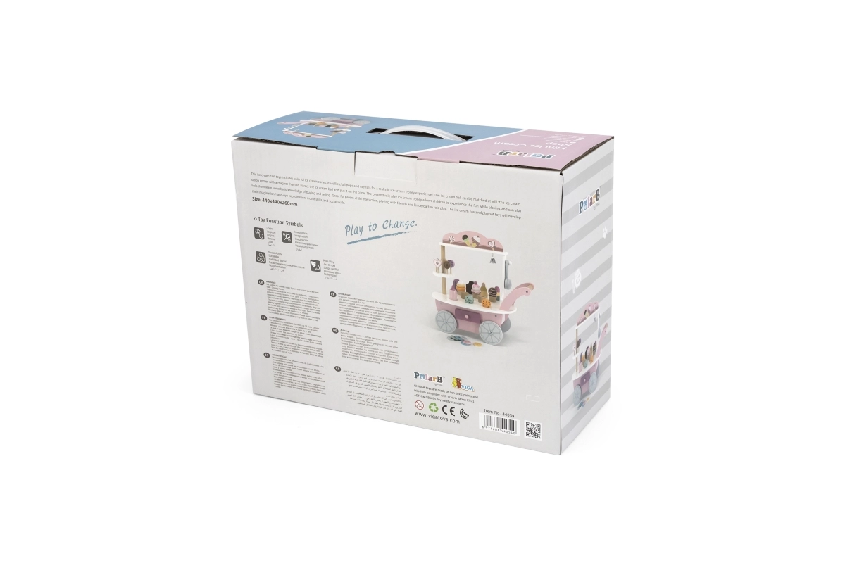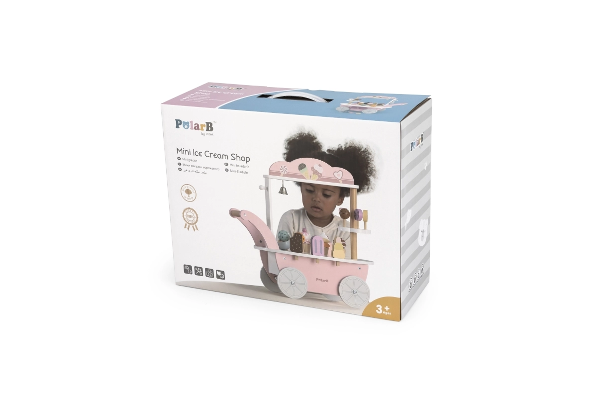 Võluv VIGA 3‑ühes puidust kiosk – sari POLARB – toimib kui kommipood, jäätisekohvik ja väike poekene. Lapsed naudivad rollimängu müüja, maiuste valmistamise ja klientide teenindamisega. Komplektis on rikkalikud lisad (kommid pulgal, jäätised, vahvlid, kastmed), praktiline avatav riiul ning ohutu teostus kvaliteetsest puidust ja mittetoksiliste värvidega õrnades pastelltoonides.