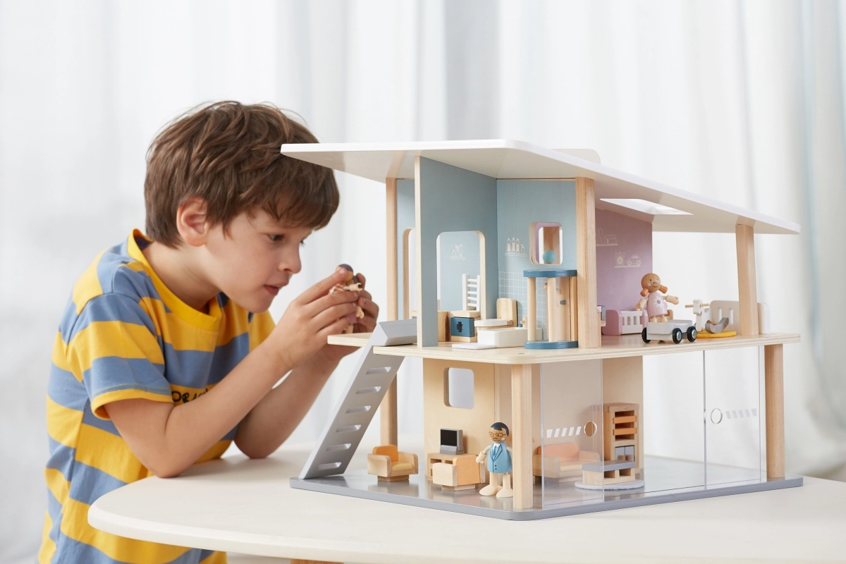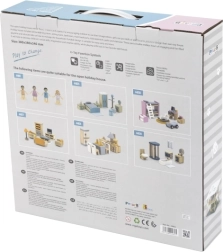 Interjööri saab täiendada temaatiliste mööblikomplektidega (köök, elutuba, magamistuba, lastetuba ja vannituba), mis laiendavad mänguvõimalusi ja toetavad teadmisi kodu toimimisest.