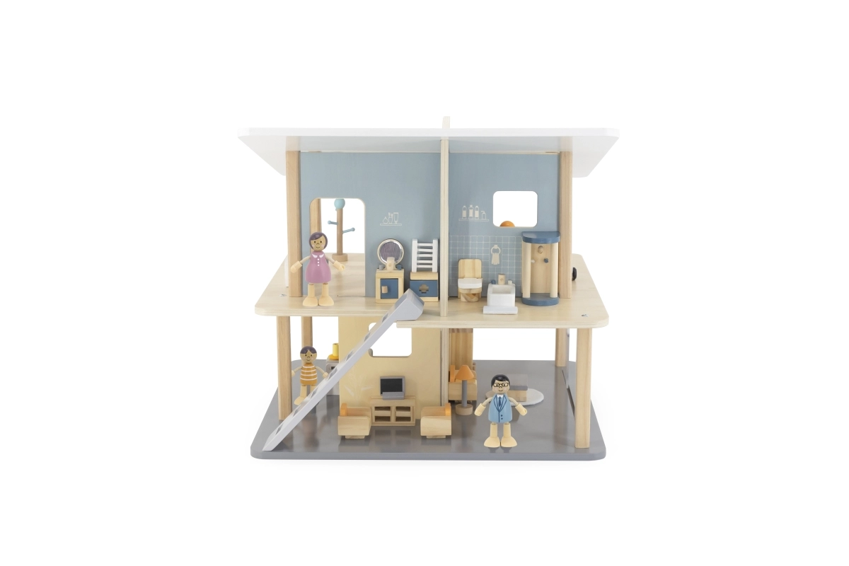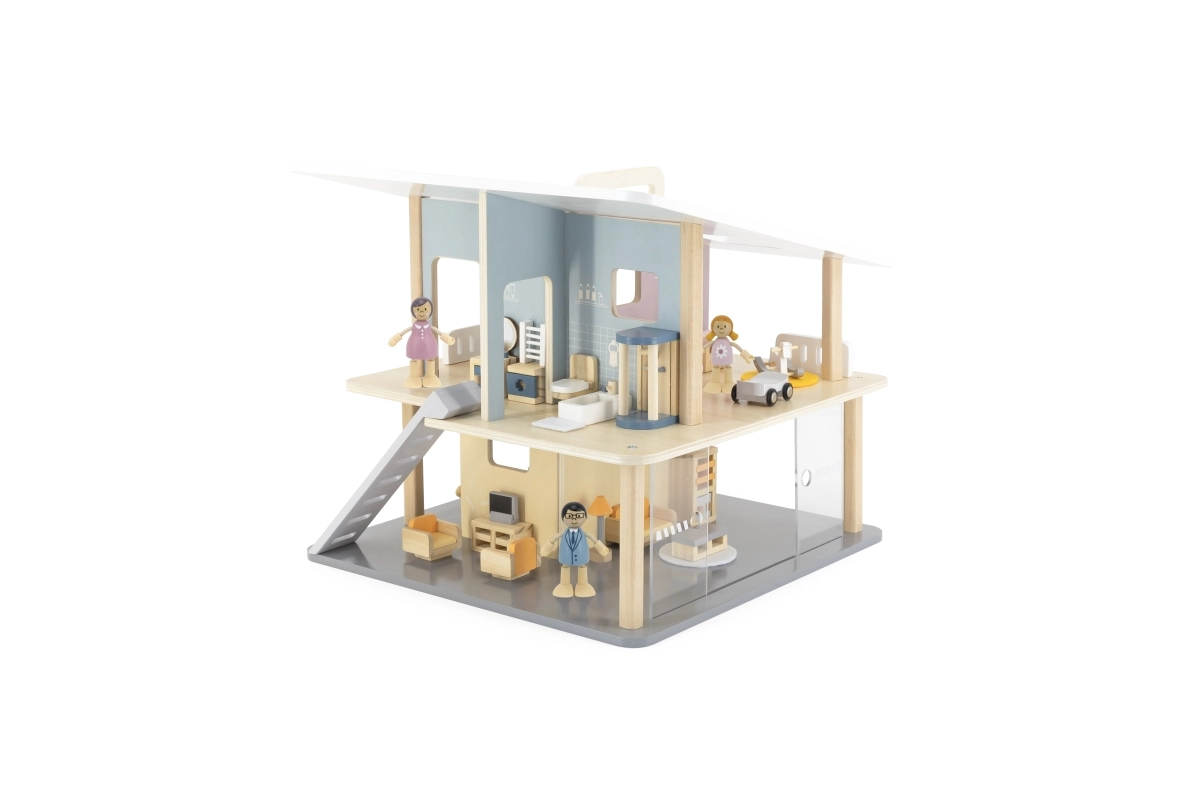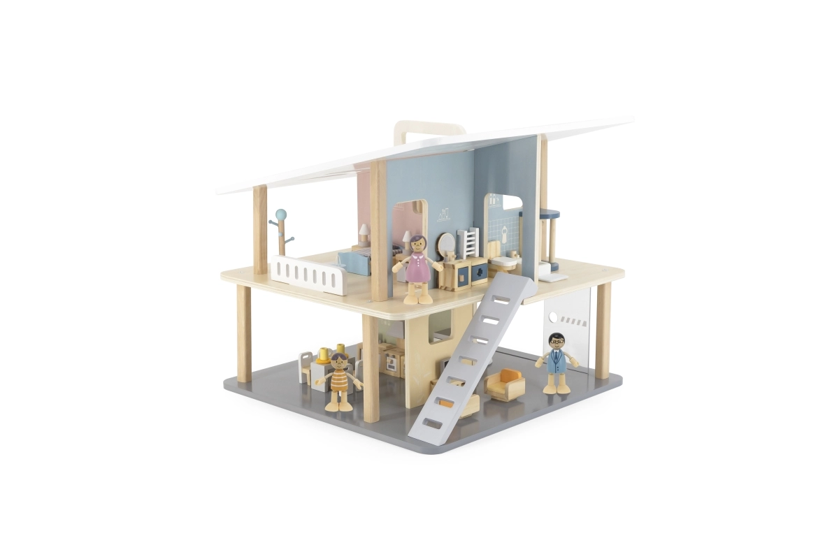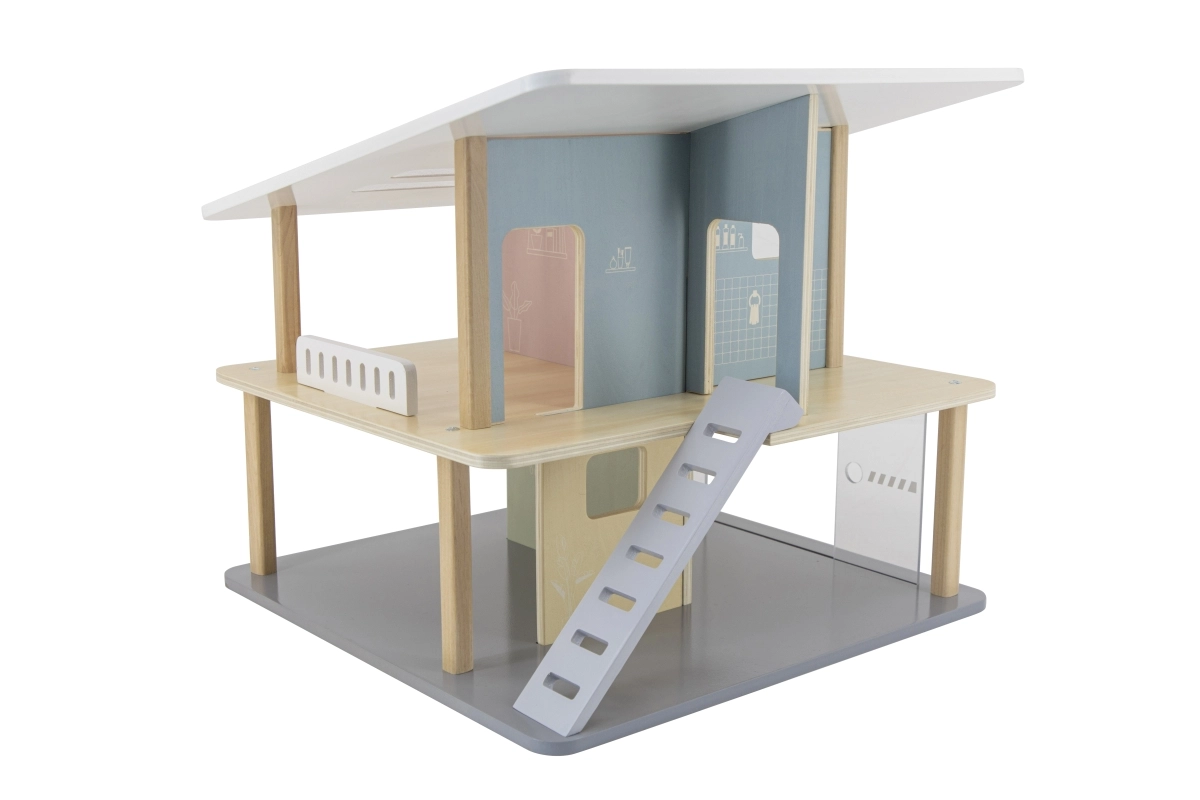 See moodne puidust nukumaja pakub lastele ruumi vabamänguks ja fantaasia arendamiseks. Avatud konstruktsioon võimaldab lihtsat ligipääsu kõikidesse ruumidesse, kaks korrust ja terrass kutsuvad looma oma lugusid. Tänu kaasaskantavale lahendusele saab maja hõlpsasti ümber paigutada ja ära panna.