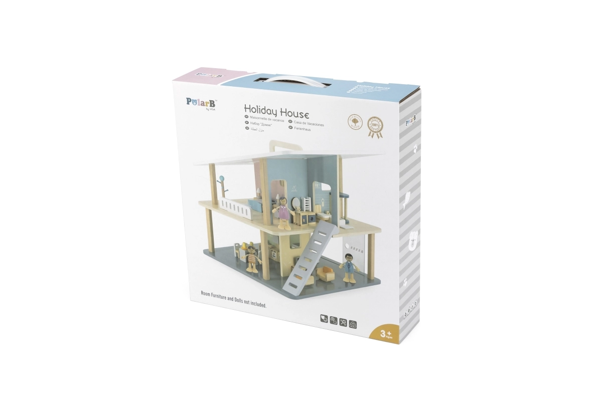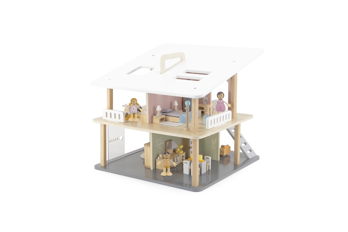 Stiilne puidust nukumaja kahe korruse, viie toa ja terrassiga pakub avatud ligipääsu lihtsaks mänguks, kaasaskantavat lahendust käepidemega ning tunde loovat, kujutlusvõimet arendavat lõbu lastele alates 3. eluaastast.