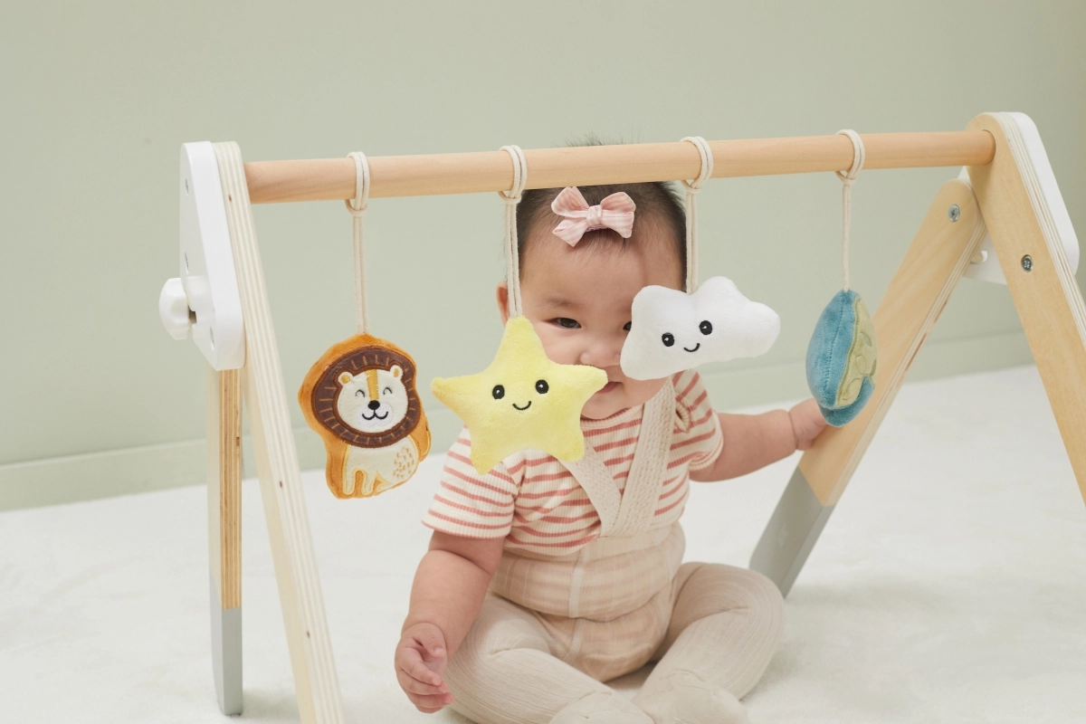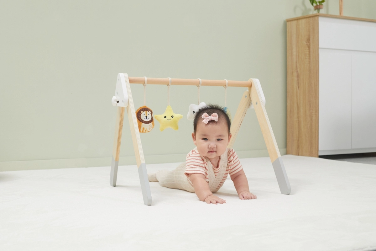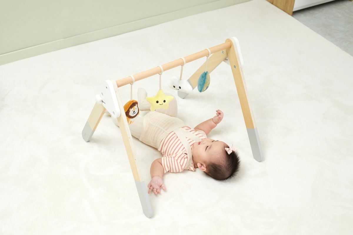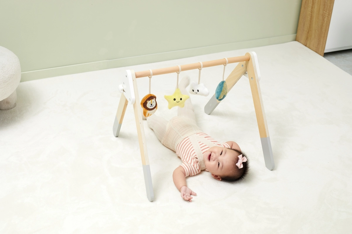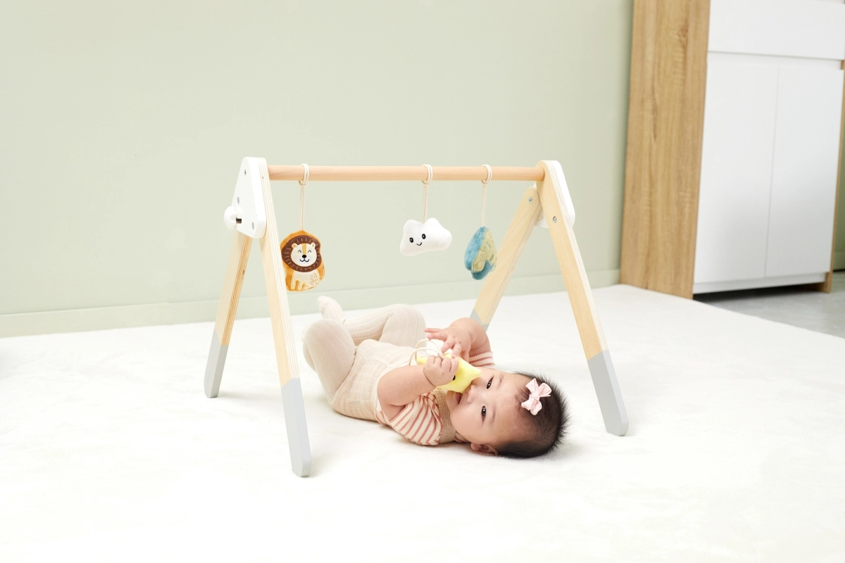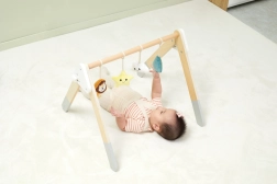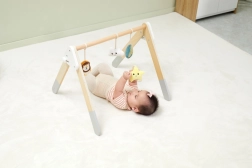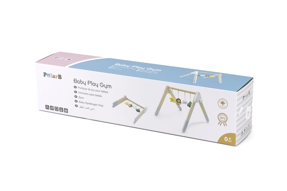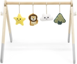 See kvaliteetne puidust beebigym sobib juba alates 1. elukuust. Looduslik ilme ja mahedad värvid sobivad igasse interjööri. Rippmänguasjad köidavad beebi tähelepanu helide ja eri tekstuuridega, mis stimuliseerivad nägemist, kuulmist ja kompamist.