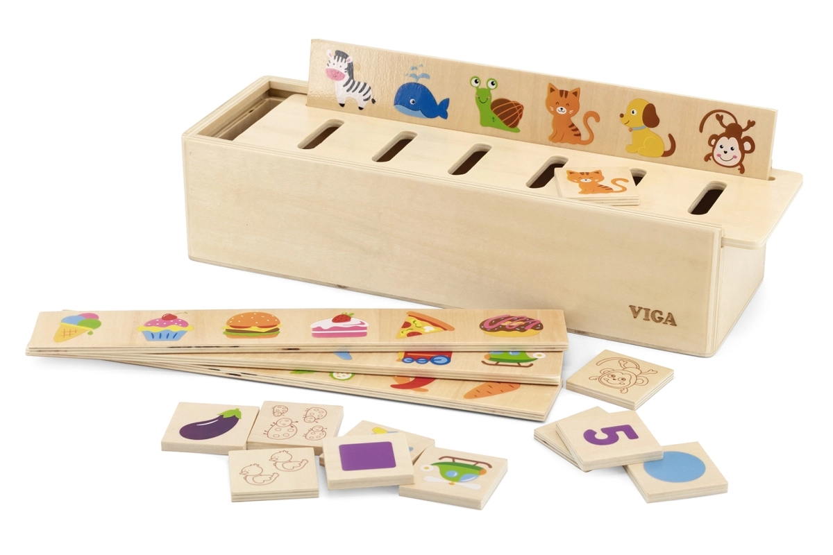 Puidust sorteerija VIGA on läbimõeldud hariv vahend montessori stiilis. Kasti ülaossa asetatakse üks pikkadest motiivtahvlitest ning laps paneb puidust klotsid õigetele avadele vastavalt piltidele ja kategooriatele. Mäng arendab visuaalset taju, peenmotoorikat ja keskendumist ning õpetab tundma puuvilju, köögivilju, loomi, kujundeid, transpordivahendeid ja numbreid.