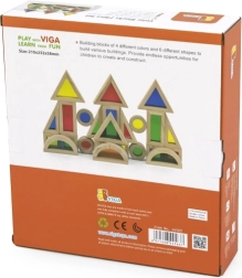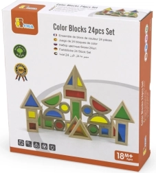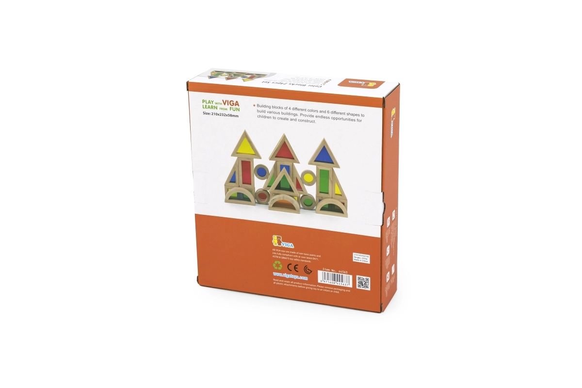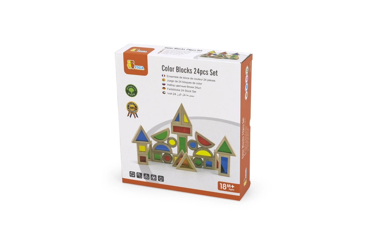Viga 24-osaline värviliste puidust klotside komplekt on mõeldud lastele alates 18. elukuust. See hariv ja lõbus toode toetab väikelaste loovust ja peenmotoorika arengut, olles samas väikestele lastele ohutu.