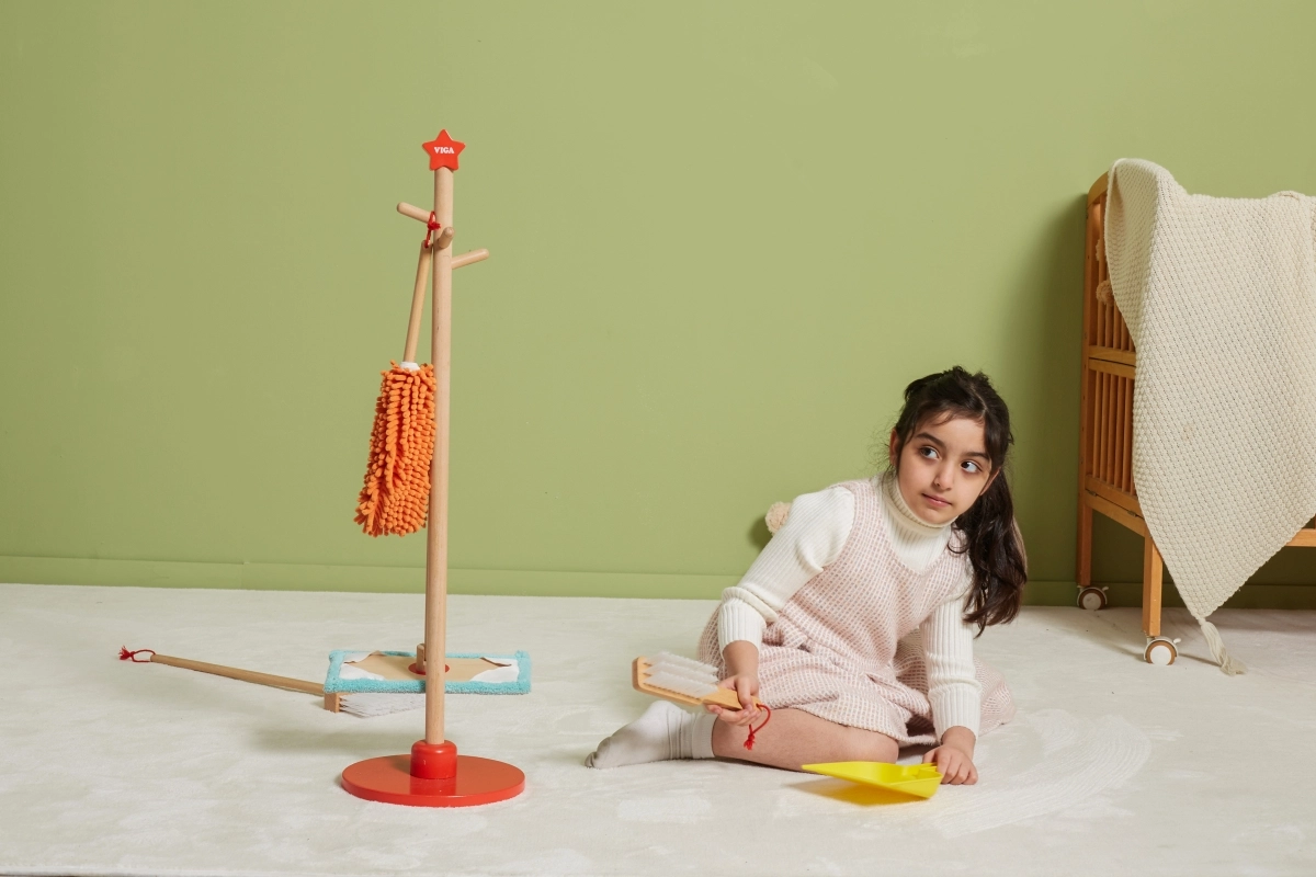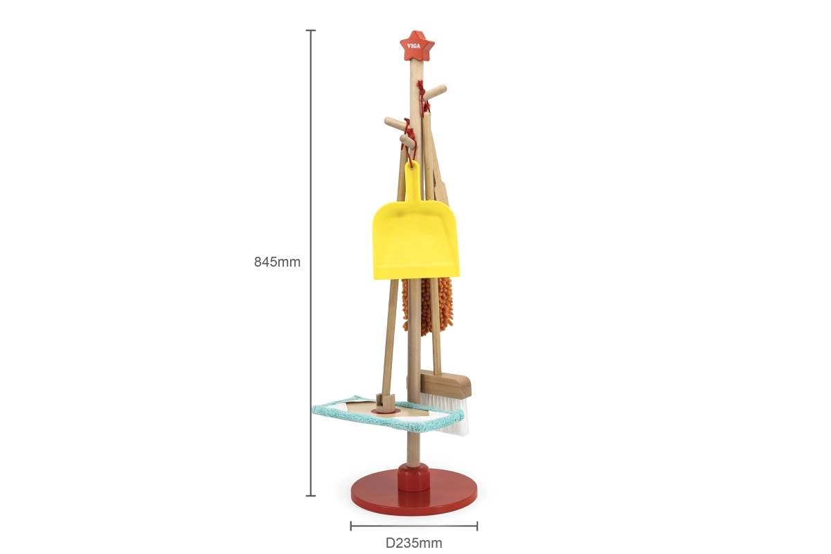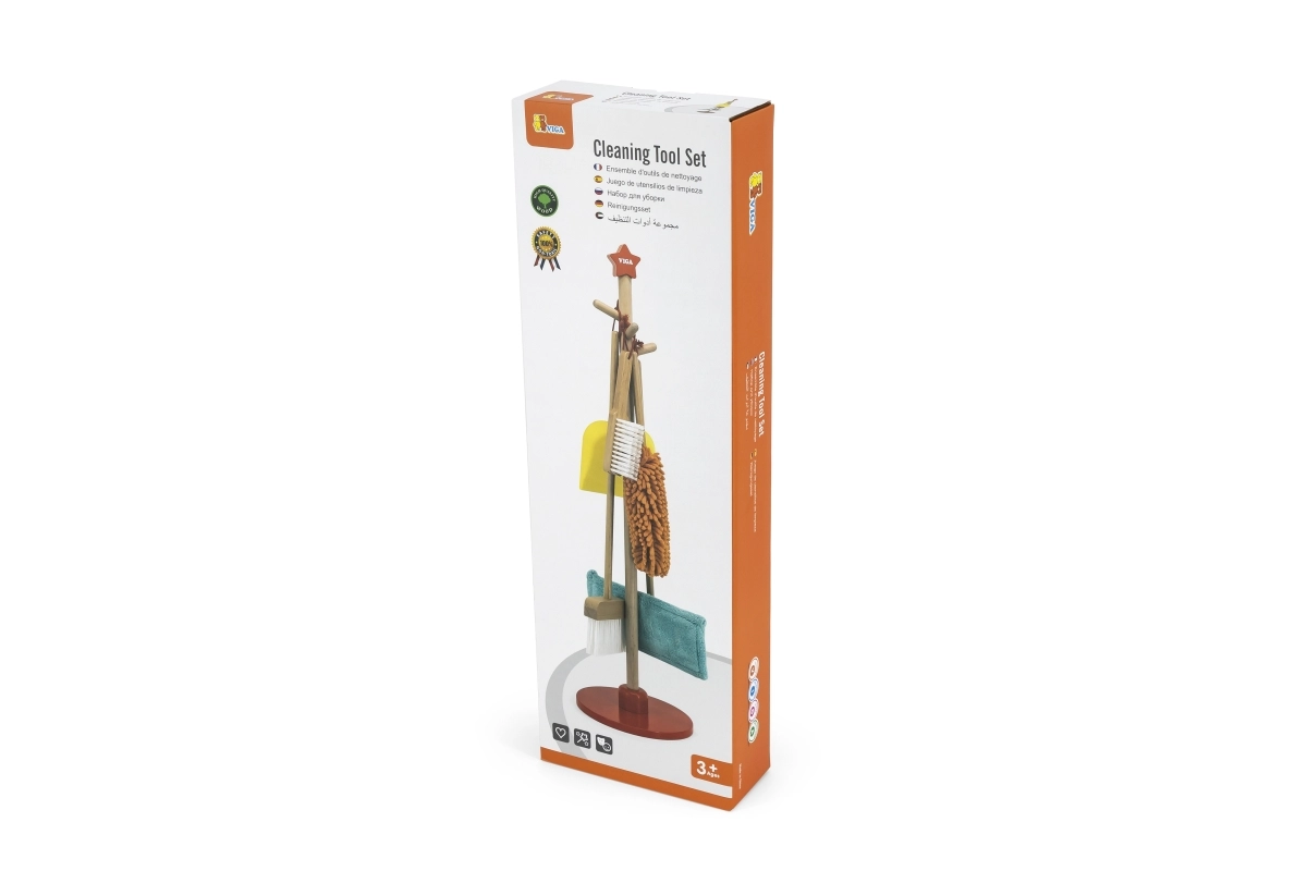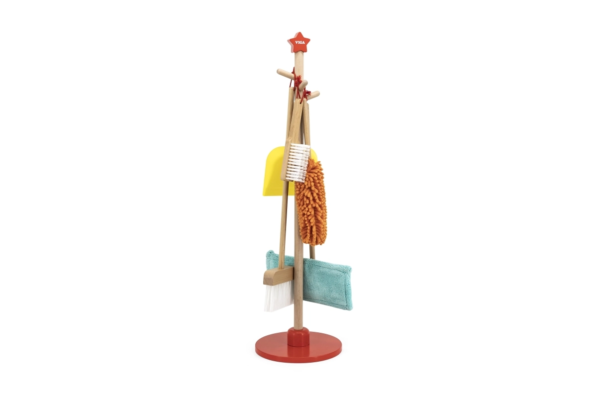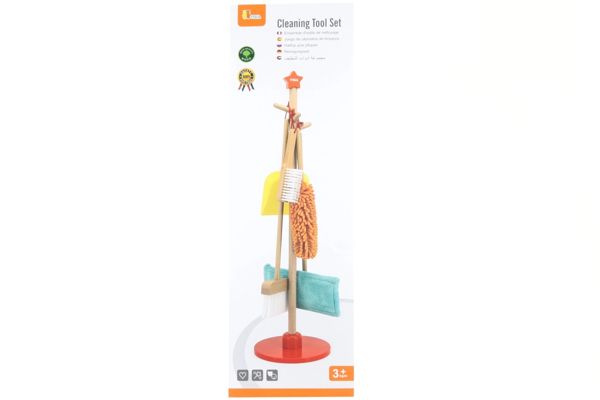 Viga puidust koristuskomplekt on ideaalne väikestele abilistele, kes tahavad aktiivselt korra hoidmisel kaasa lüüa. Tänu sellele komplektile, mis sisaldab harja, mopi, tolmulappi ja teisi vahendeid, arendavad lapsed oma motoorseid oskusi ja õpivad mängides vastutust.