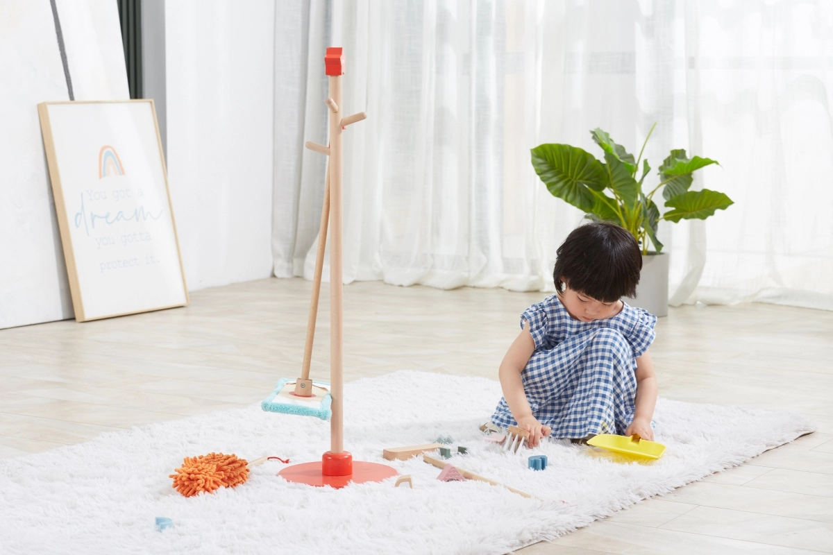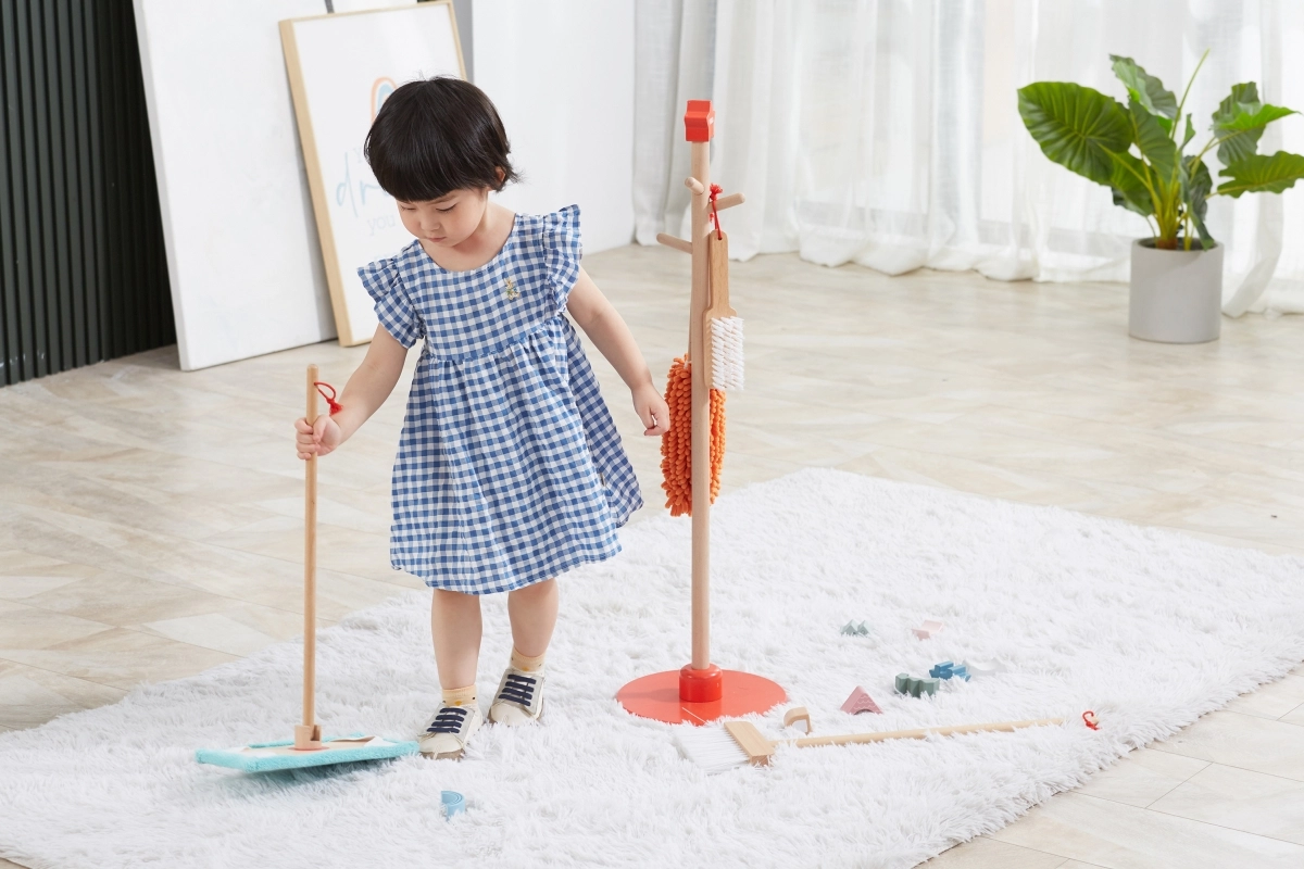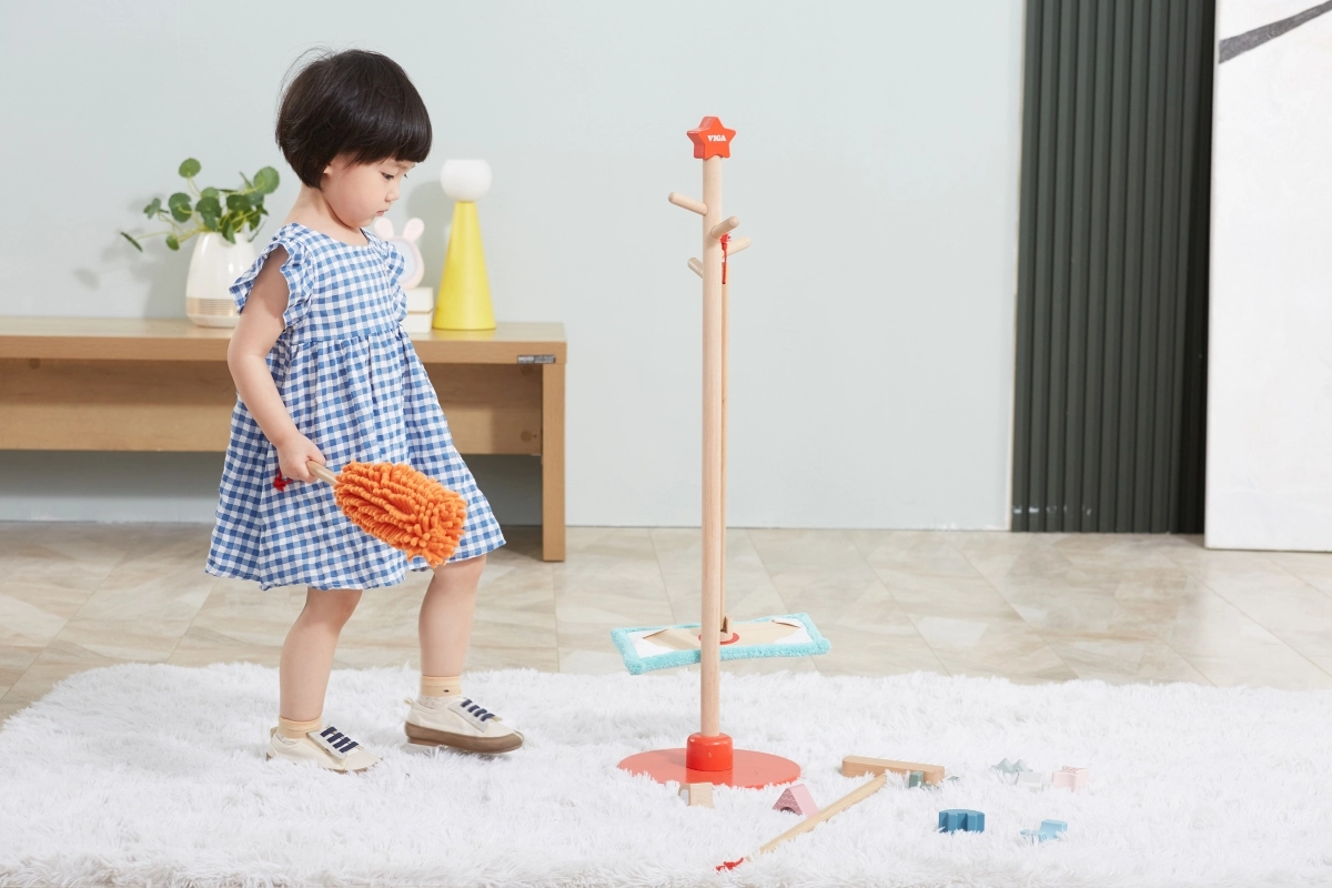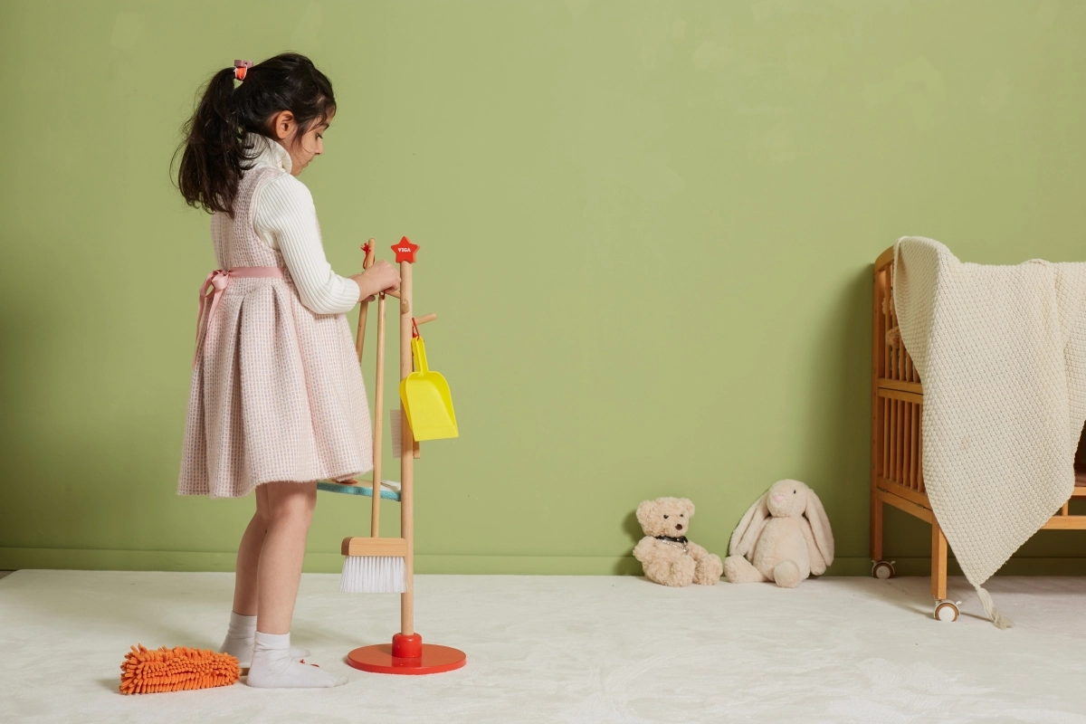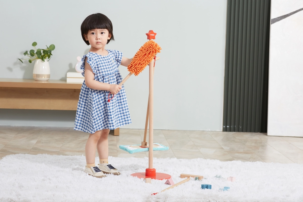 Viga puidust koristuskomplekt on ideaalne väikestele abilistele, kes tahavad aktiivselt korra hoidmisel kaasa lüüa. Tänu sellele komplektile, mis sisaldab harja, mopi, tolmulappi ja teisi vahendeid, arendavad lapsed oma motoorseid oskusi ja õpivad mängides vastutust.