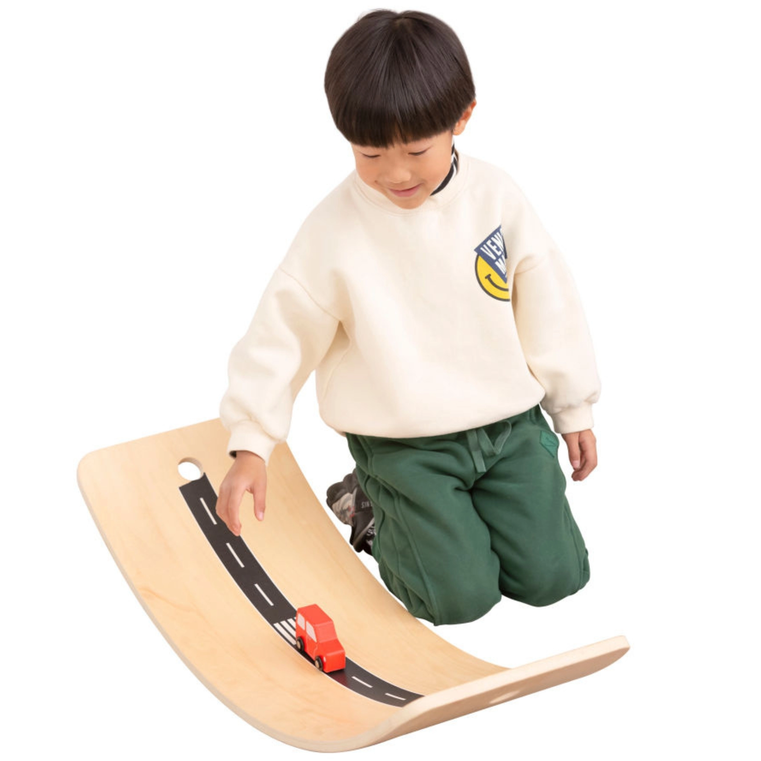 Kaasasoleva puidust käepidemetega köie abil saavad lapsed lauda vedada, sellel istuda ja liikuda. Kolm kleepitavat triipu muudavad pinna autoteeks, nii et lauast saab ka loov mänguelement – r ramp, sild, liumägi või võidusõidurada. Laud kasvab koos lapsega alates eelkoolieast ning tänu suurele kandevõimele saavad seda kasutada ka vanemad õed-vennad.