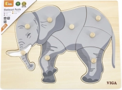 See kaunis puidust pusle elevandi motiiviga on ideaalne laste kognitiivsete oskuste ja peenmotoorika arendamiseks. Kõik tükid on varustatud nuppudega, mis võimaldavad lastel neid kergesti käsitseda.