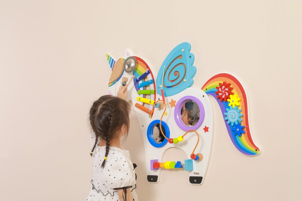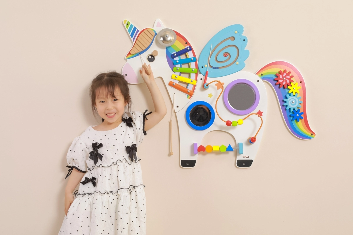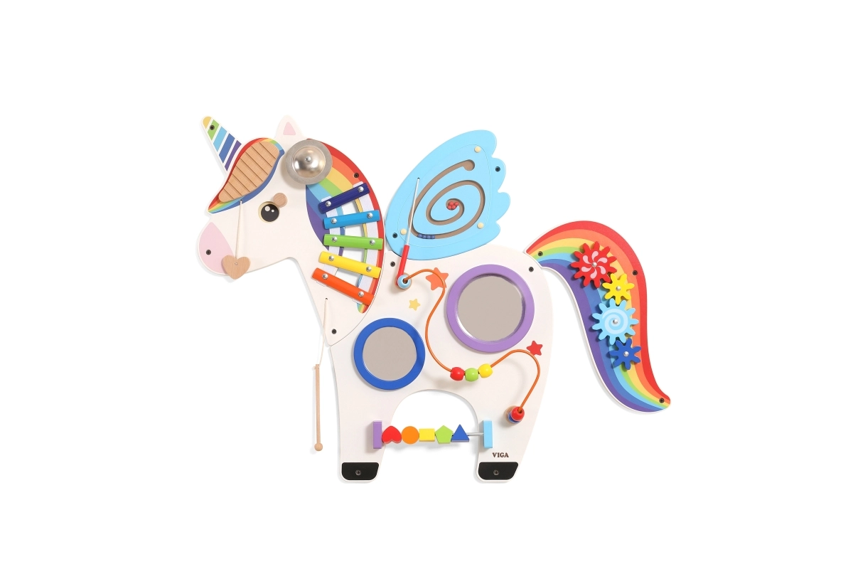 See multifunktsionaalne seinalaud ükssarviku kujul ühendab muusikalised, taktiilsed ja loogikat arendavad elemendid ühes köitvas tervikus. Lapsed mängivad ksülofonil, keerutavad hammasrattaid, proovivad magnetlabürinti ja peegleid ning harjutavad värve, kujundeid ja liigutuste koordineerimist.