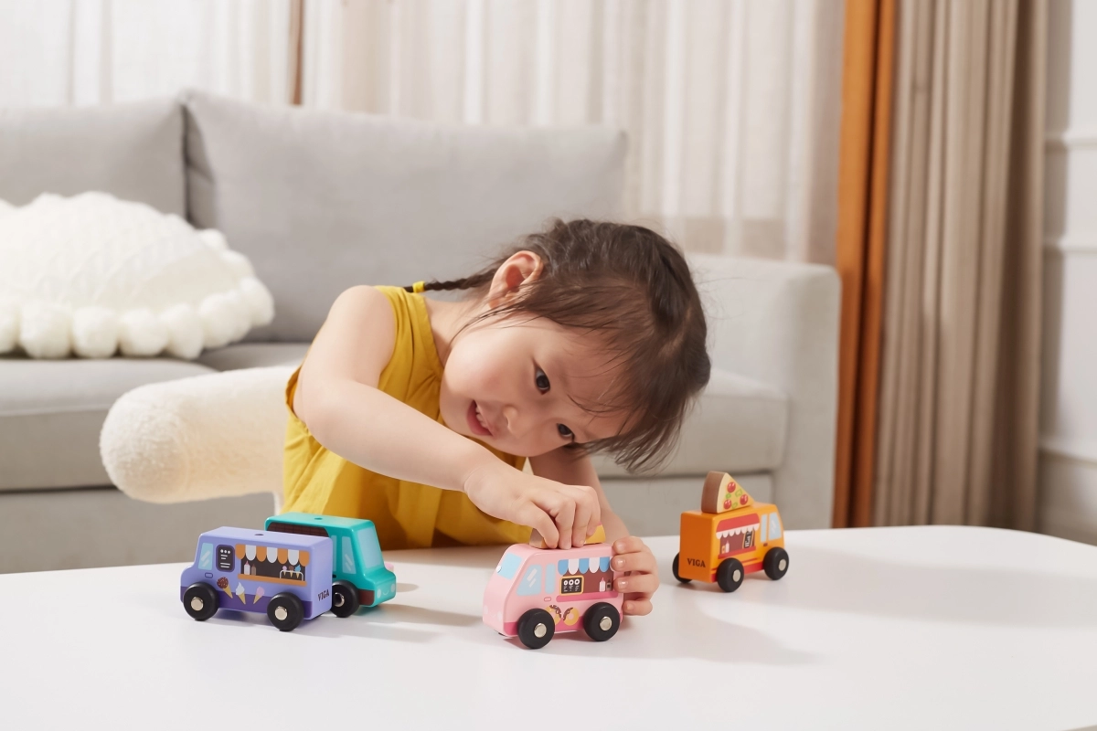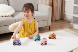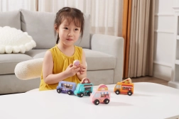 Kompaktse suuruse tõttu on autod mugavad hoida ka kõige väiksematel kätel. Mäng toetab peenmotoorikat, koordinatsiooni, värvide äratundmist ja loogilist mõtlemist. Komplekt on suurepärane täiendus lastesöögitegemise mänguköökidele või linnakomplektidele ning ideaalne ühismänguks õdede-vendadega.