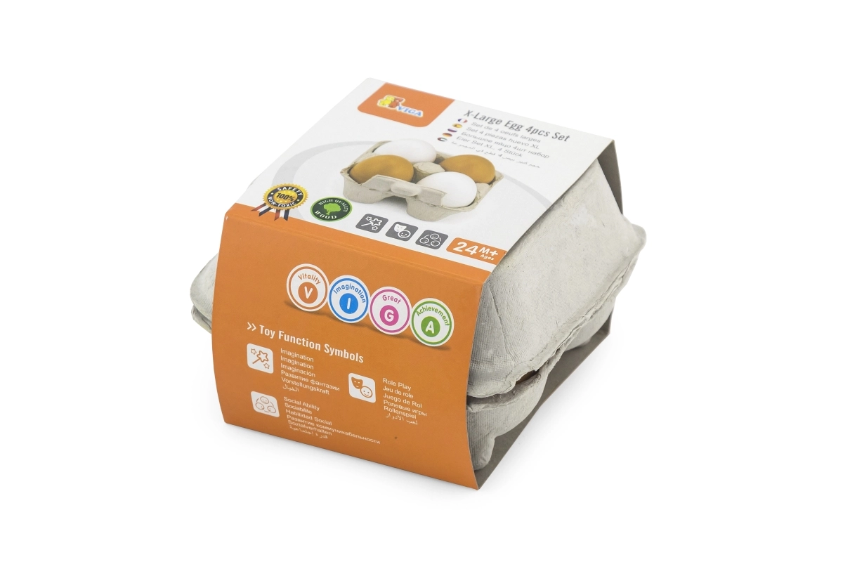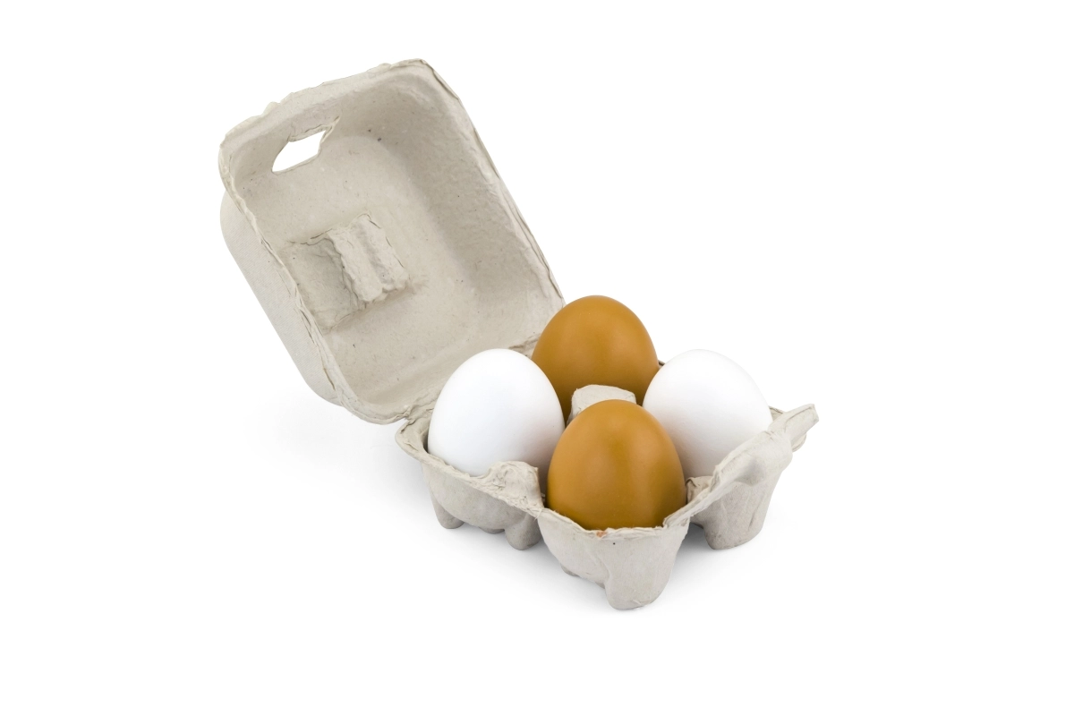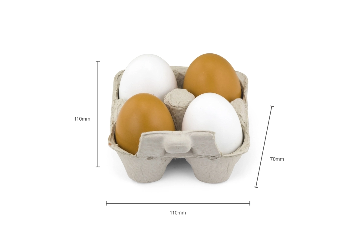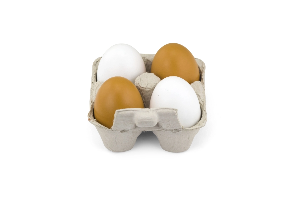 Neli puidust muna kahes värvitoonis pakuvad lastele autentset kokkamise ja poeskäigu mängukogemust.