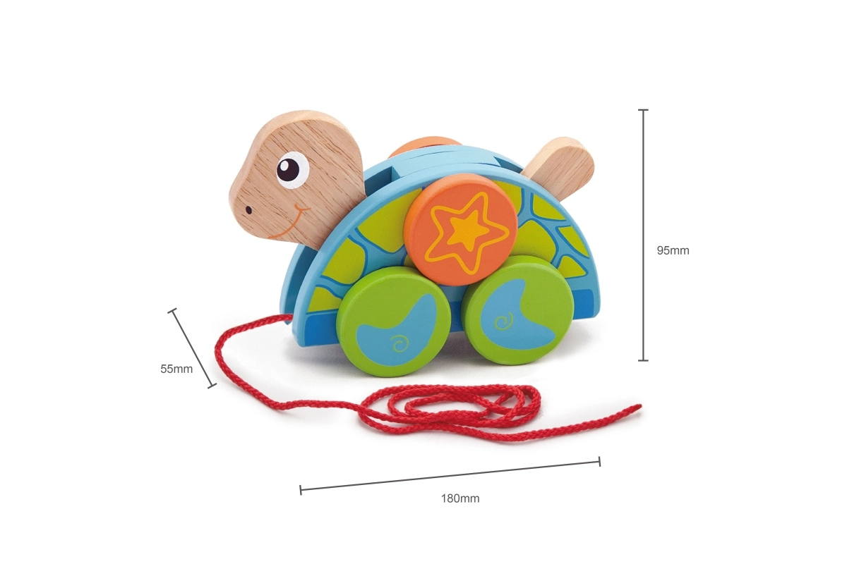 Rõõmsad värvid, kilpkonna sõbralik ilme ja lihtne tõmbamine põrandal muudavad iga jalutuskäigu mänguliseks seikluseks.