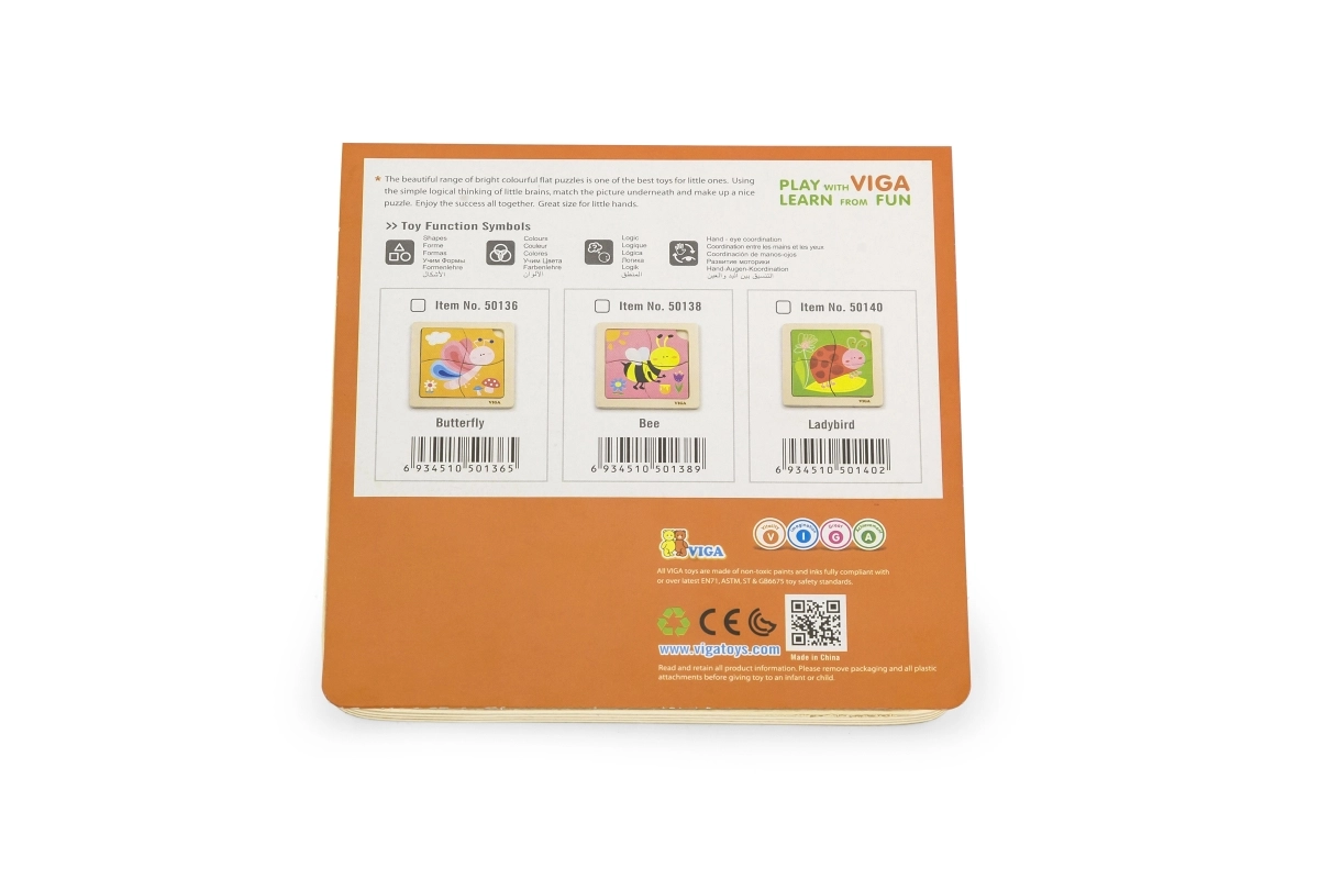 See kaunis puidust mänguasi on suurepärane täiendus nii kodudesse kui ka lasteaedadesse. See koosneb neljast temaatilisest tükist, mis on valmistatud kvaliteetsetest materjalidest ja värvitud mittetoksiliste värvidega. Alusplaat sisaldab juhendavat pilti, mis lihtsustab kokkupanekut ja lisab mängurõõmu. Tükid on kujundatud ilma teravate servadeta, seega on need lastele ohutud.