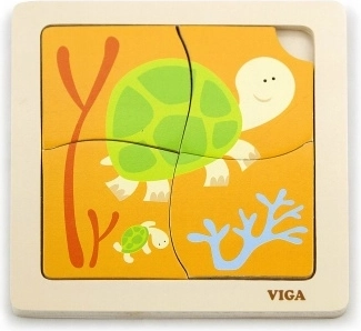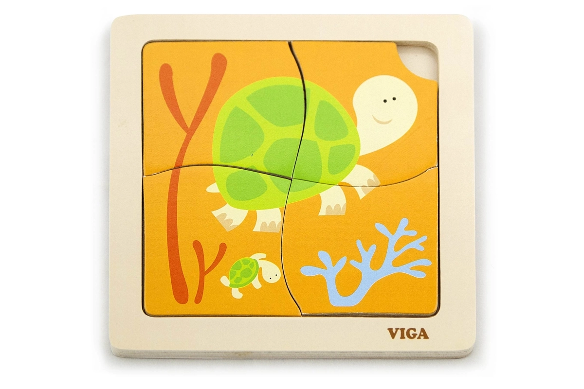 Puidust kilpkonna pusle on mõeldud lastele alates 18. elukuust. See koosneb neljast suurest tükist, mis mahuvad hõlpsasti puidust raami või mida saab kokku panna ka eraldi. Iga tükk on värvikirev ning pakub ainulaadse võimaluse arendada lapse ruumilist kujutlusvõimet ja silma-käe koordinatsiooni.