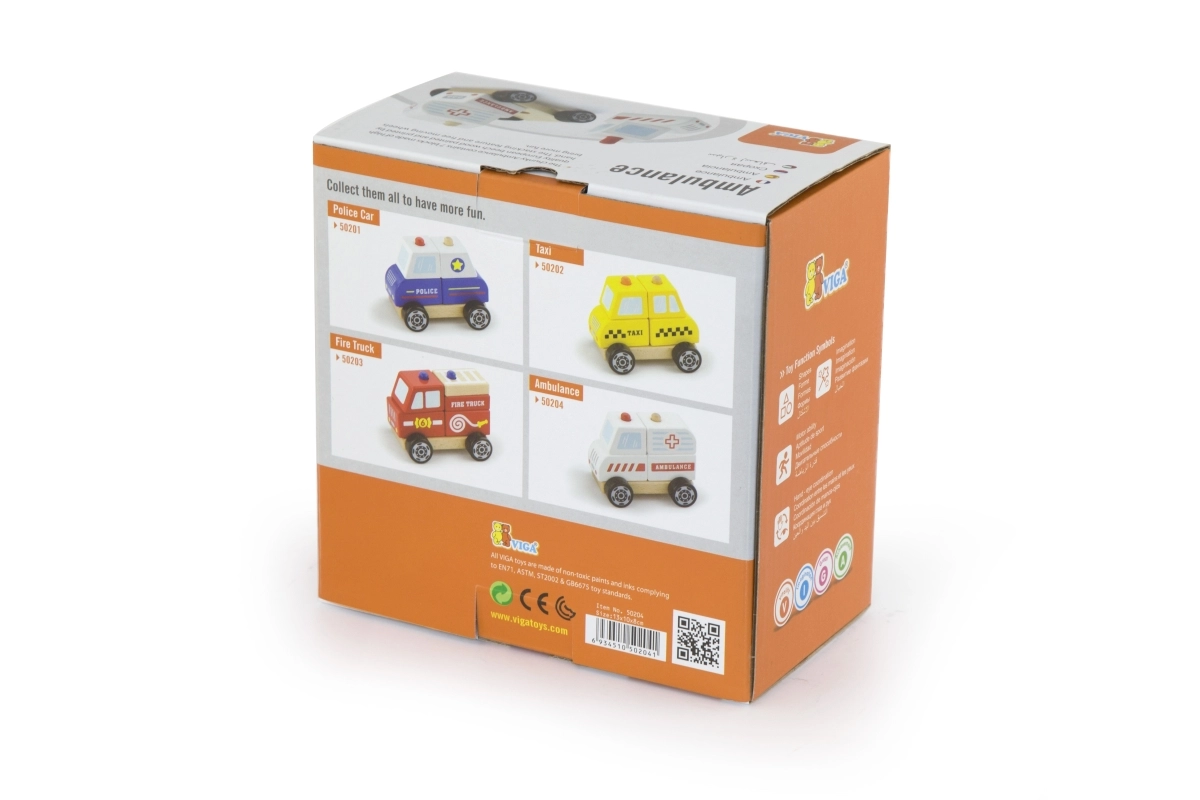 Avastage kvaliteetne puidust kiirabi, mis ühendab kokkupandavad klotsid ja liikuvad rattad lõbusaks mänguks ja motoorika arendamiseks. Ohutu teostus siledate servadega, ideaalne lastele alates 18. elukuust. Kompaktsed mõõdud, vastupidavad materjalid ja pilkupüüdev disain AMBULANCE trükiga tagavad tundidepikkuse loova mängu.