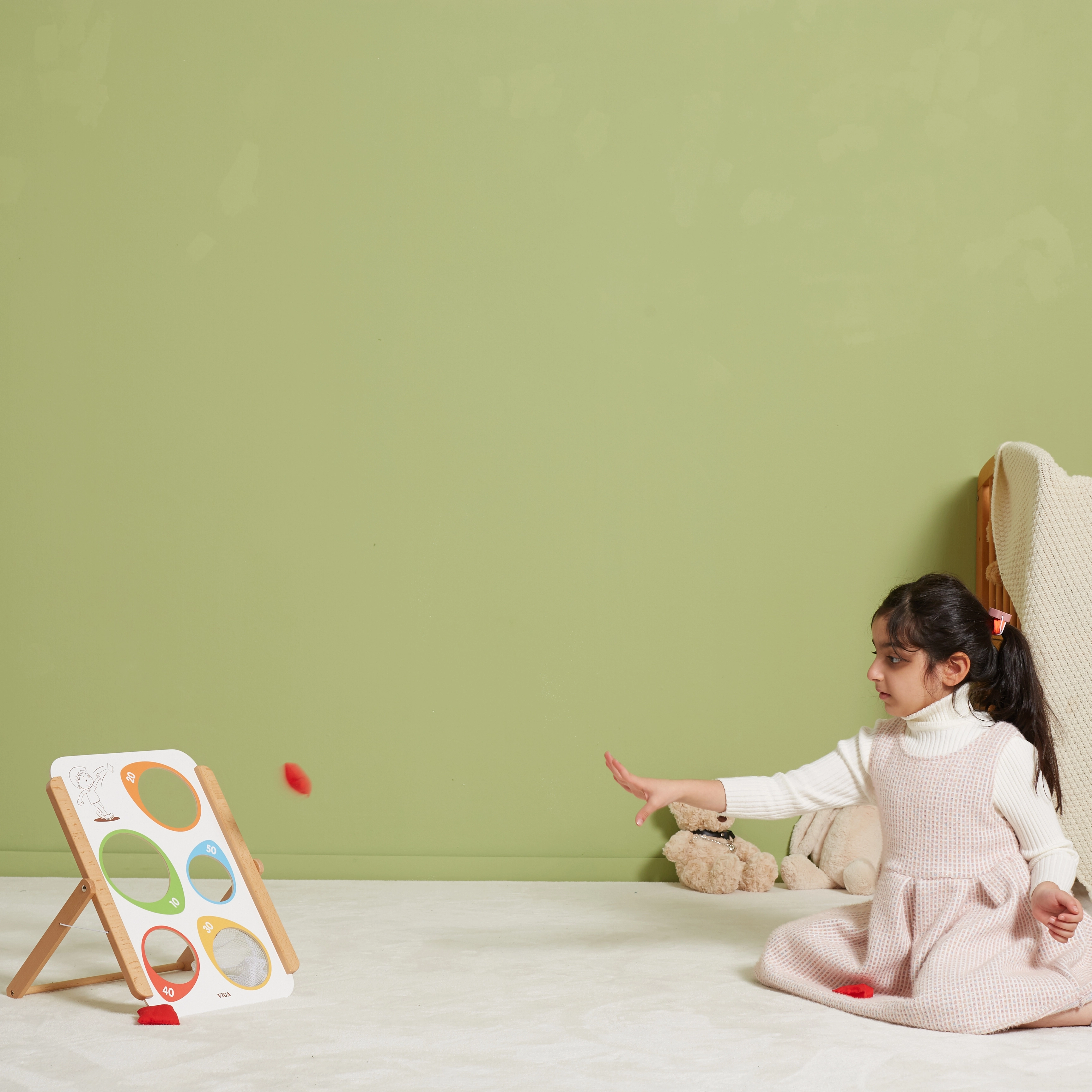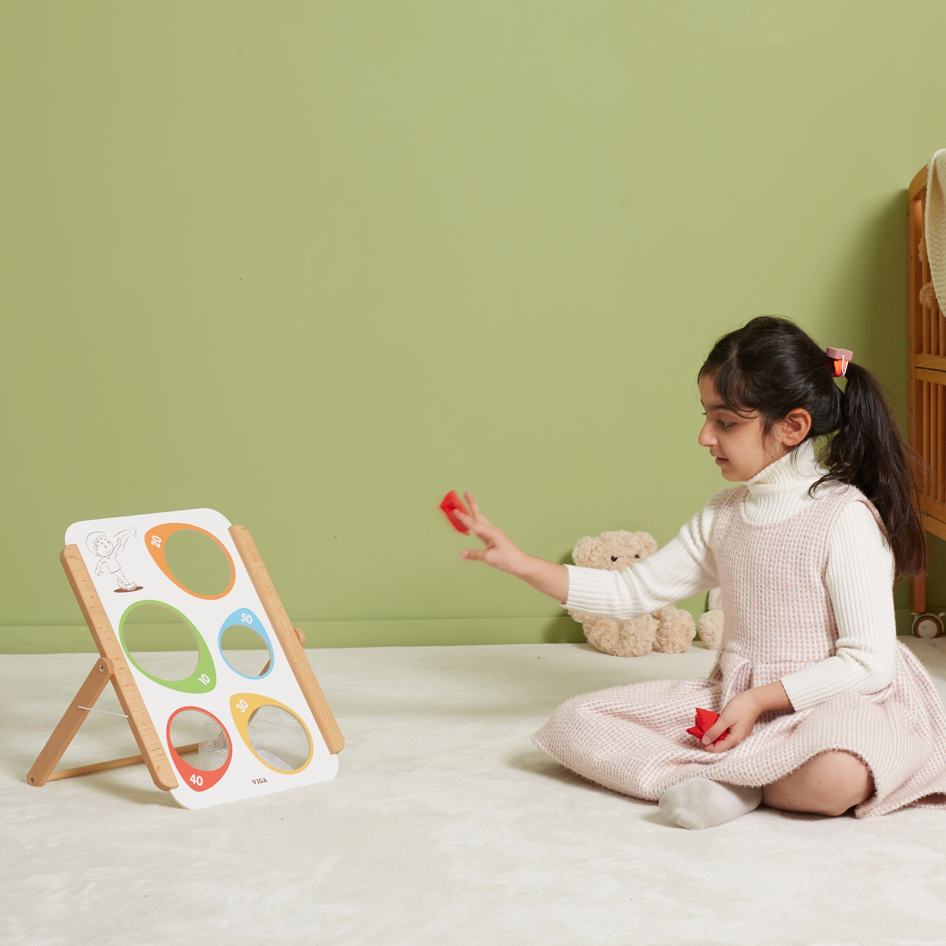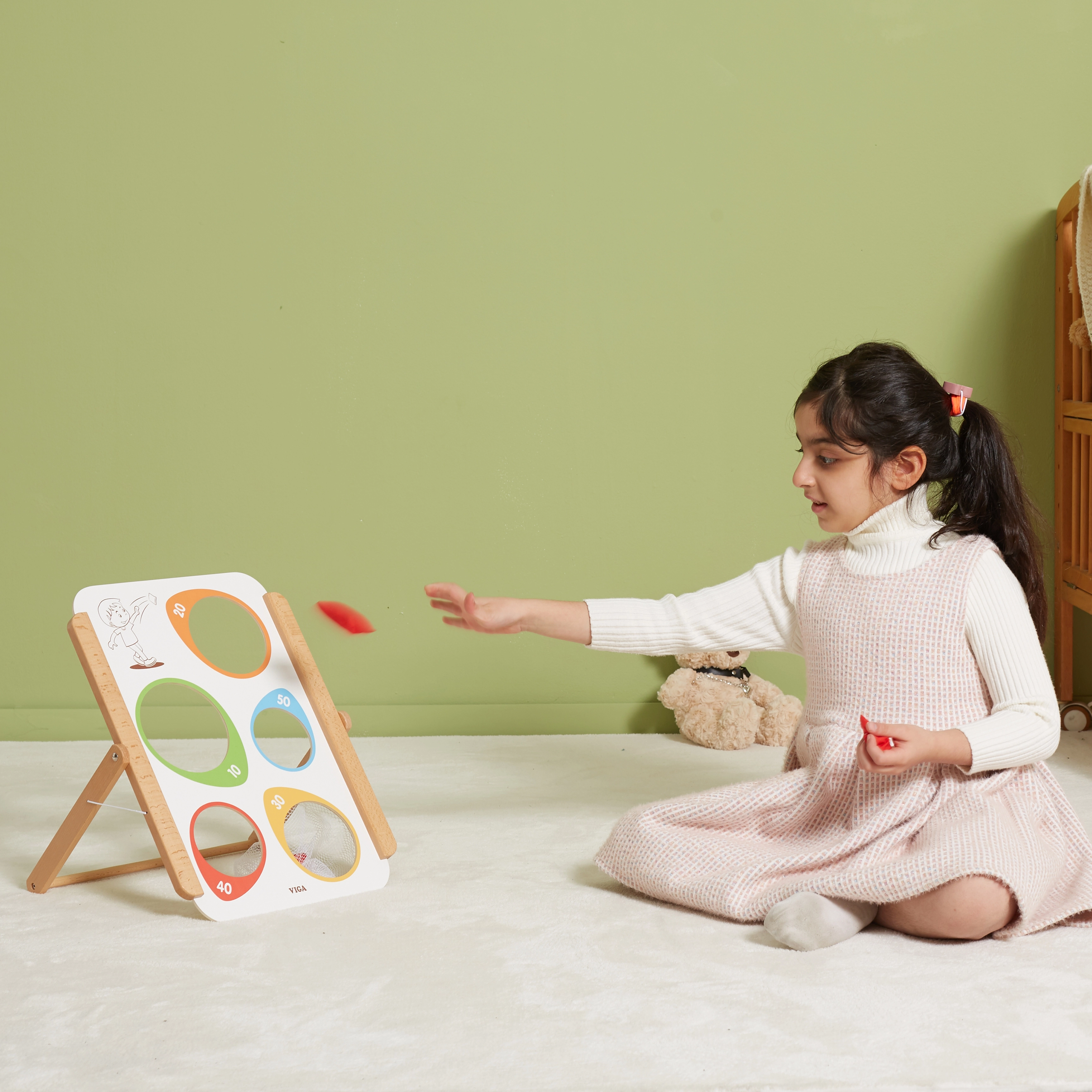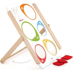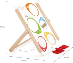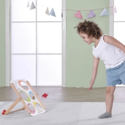 Viga puidust täpsusviskemäng pakub nii lõbu kui ka hariduslikku väärtust. Sobib ideaalselt nii koduseks kasutamiseks kui ka õuetegevusteks. Kogu mäng on valmistatud lakitud puidust ja värvitud mittetoksiliste värvidega, mis tagab pikaajalise mängurõõmu ilma terviseriskideta. Arendab suurepäraselt laste oskusi ning toetab motoorse koordinatsiooni ja kontsentratsiooni paranemist.