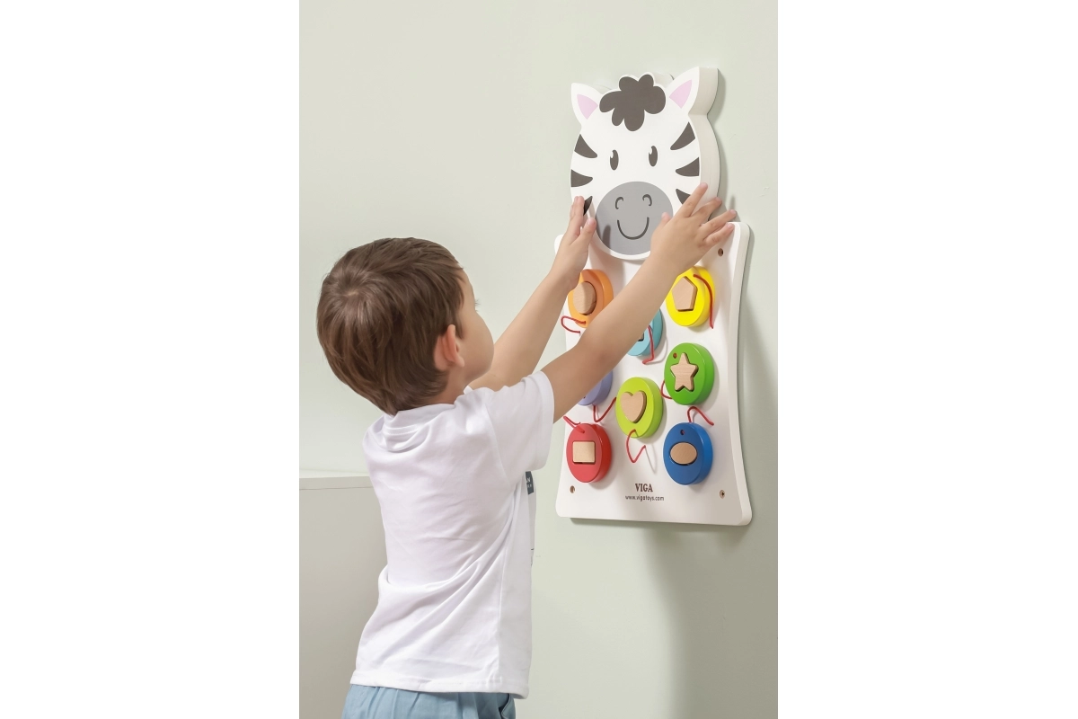 Avastage VIGA puidust seinale kinnitatava sebratahveli võlu, mis arendab lisaks loovale mõtlemisele ja käelist osavust ka võimet eristada kujundeid ja värve. See mäng sobib väikestele lastele, kes arendavad mängu kaudu oma meelelisi oskusi.