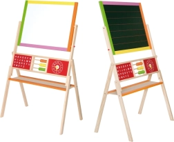 See universaalne puittahvel sobib suurepäraselt lastele alates kolmandast eluaastast tänu oma paljudele funktsioonidele. See pakub magnetpinda, mis sobib madalsurve markeritele, ning kriidipinda traditsiooniliseks kirjutamiseks ja joonistamiseks. Tahvel sisaldab ka lõbusaid ja harivaid elemente:
