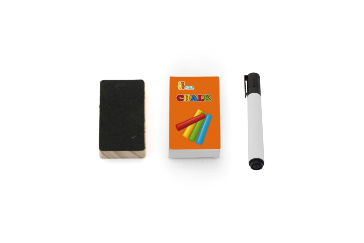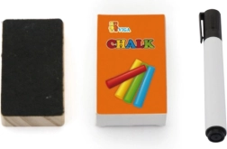 Komplektis on kõik vajalikud tarvikud, sealhulgas kriidid, marker ja käsn lihtsaks kustutamiseks.