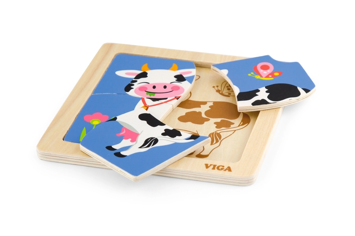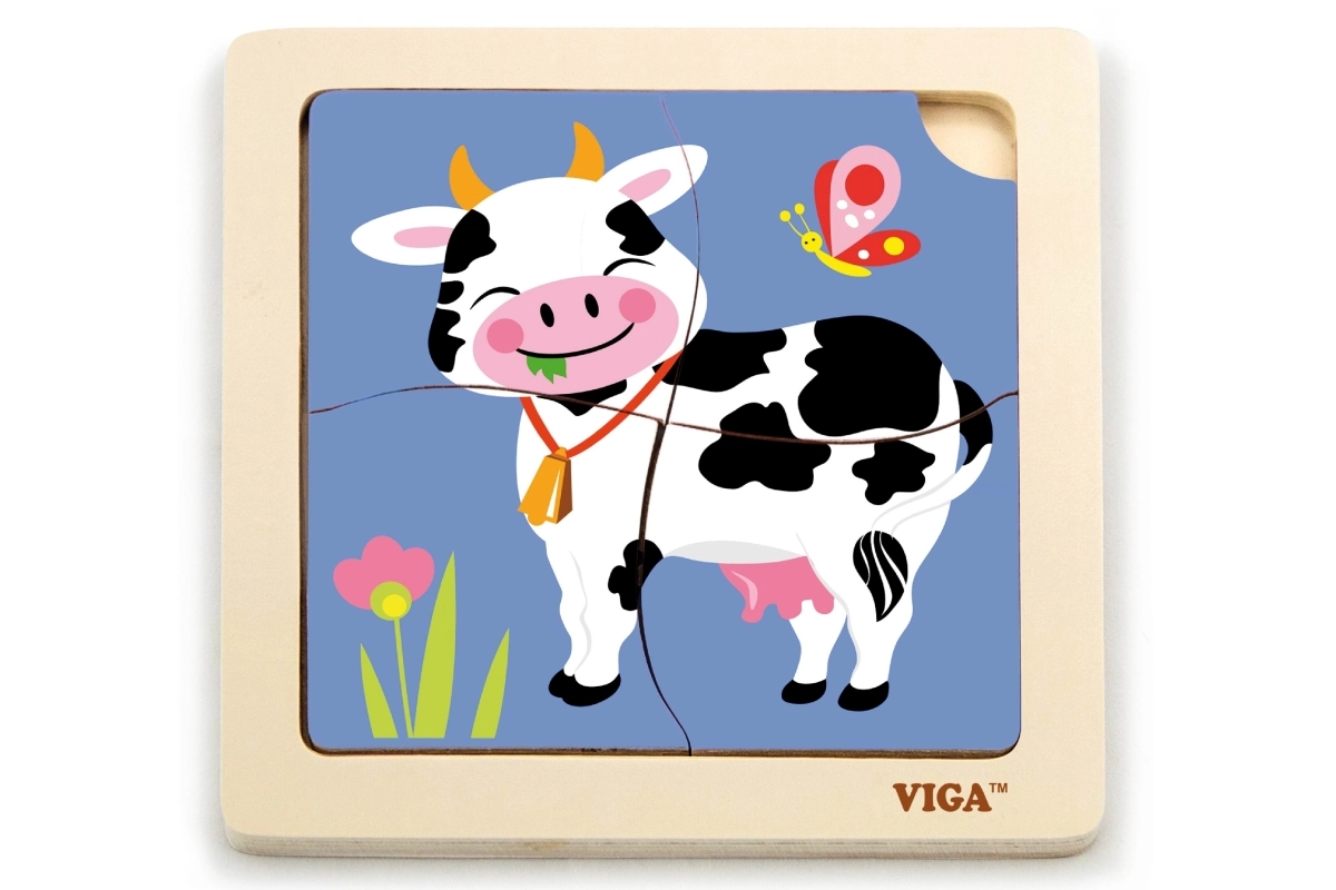 Viga kaubamärgi puidust lehmakesega pusle pakub väikestele lastele suurepärast võimalust õppida kujundeid ära tundma ja arendada peenmotoorikat. Komplektis on 4 pusletükki ning aluskujutis, mis aitab lapsel tükke õigesti paigutada. Pusle on hoolikalt valmistatud ohutust puidust ja kaunistatud erksate, mittetoksiliste värvidega. Iga mäng selle puslega on teie lapsele täis rõõmu ja arengut.