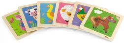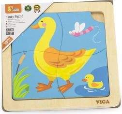 Viga puidust pusle sisaldab nelja temaatilist tükki, mis kinnituvad hõlpsasti pildialusele. Iga tükk on valmistatud kvaliteetsest puidust ja värvitud ohutute, mittetoksiliste värvidega, mis tagavad turvalisuse nii lastele kui ka keskkonnale.