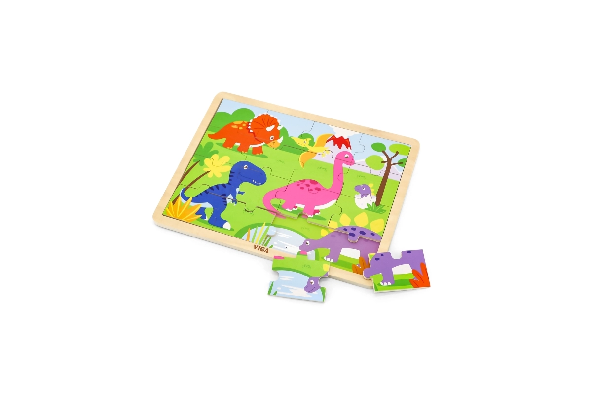 Värviline VIGA puidust dinosauruspusle on suurepärane valik esimeseks pusleks. Lapsed harjutavad mänguliselt tähelepanu, keskendumist ja ruumilist kujutlusvõimet, samal ajal kui vastupidavad puidust tükid sobivad hästi väikestesse kätetesse.