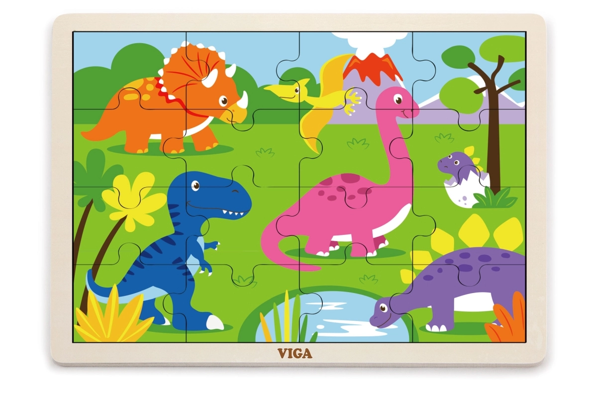 Avastage kvaliteetne VIGA puidust dinosauruspusle, mis pakub lastele esimest rõõmu kokkupanekust. 16 tükki arendab peenmotoorikat, silma-käe koordinatsiooni ja loogilist mõtlemist. Tükke saab paigutada puidust alusele raamiga või panna pildi kokku ka ilma raamita. Valmis pusle mõõt on u 27,5 × 20 cm, sobib alates 24. elukuust.