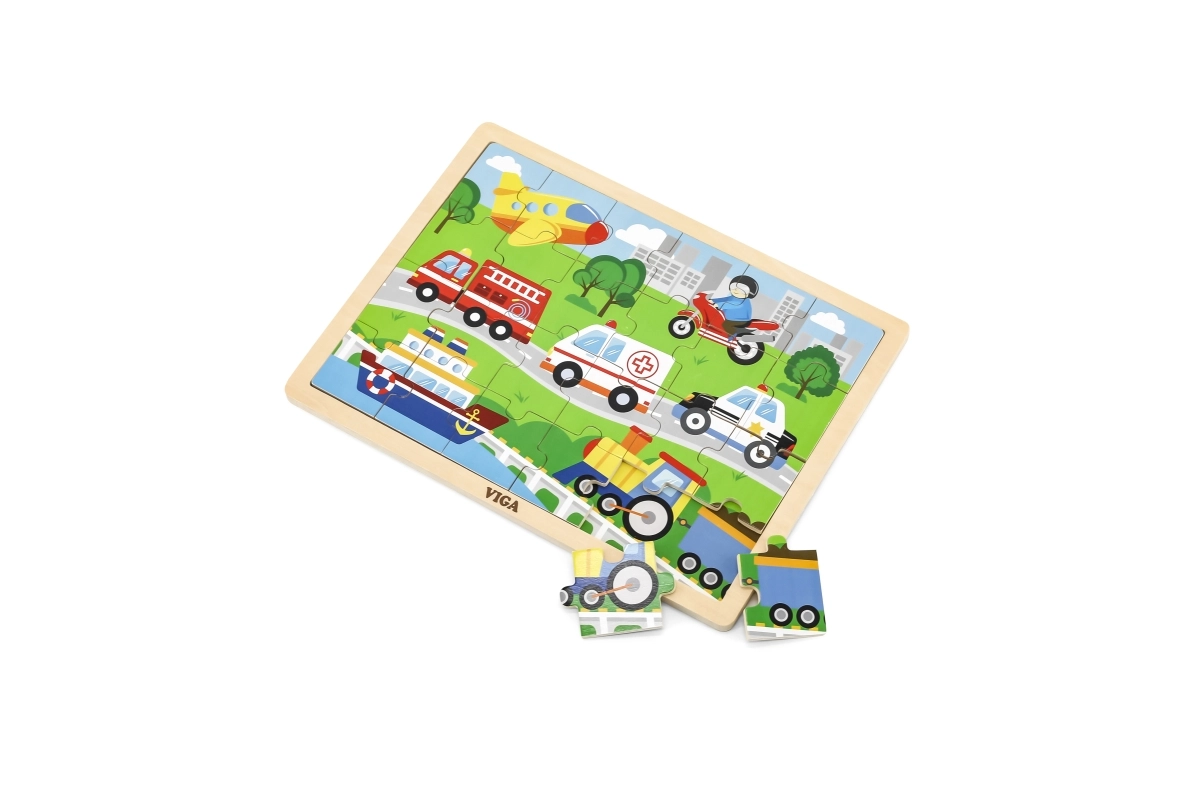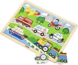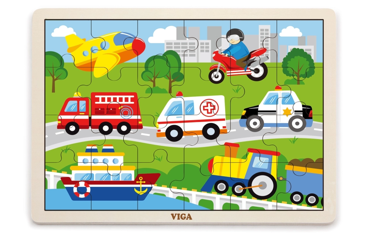 See puidust pusle transpordivahendite piltidega on suurepärane valik esimeseks “suuremaks” pusleks. Tänu 24 tükile pakub see just parajat väljakutset – toetab keskendumist ning rõõmu valmis pildist mõõtmetega u 27,5 × 20 cm. Värvilised illustratsioonid sõidukitest (kiirabi, tuletõrjeauto, politseiauto, laev, lennuk jm) innustavad lapsi mängu kordama.