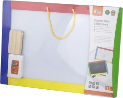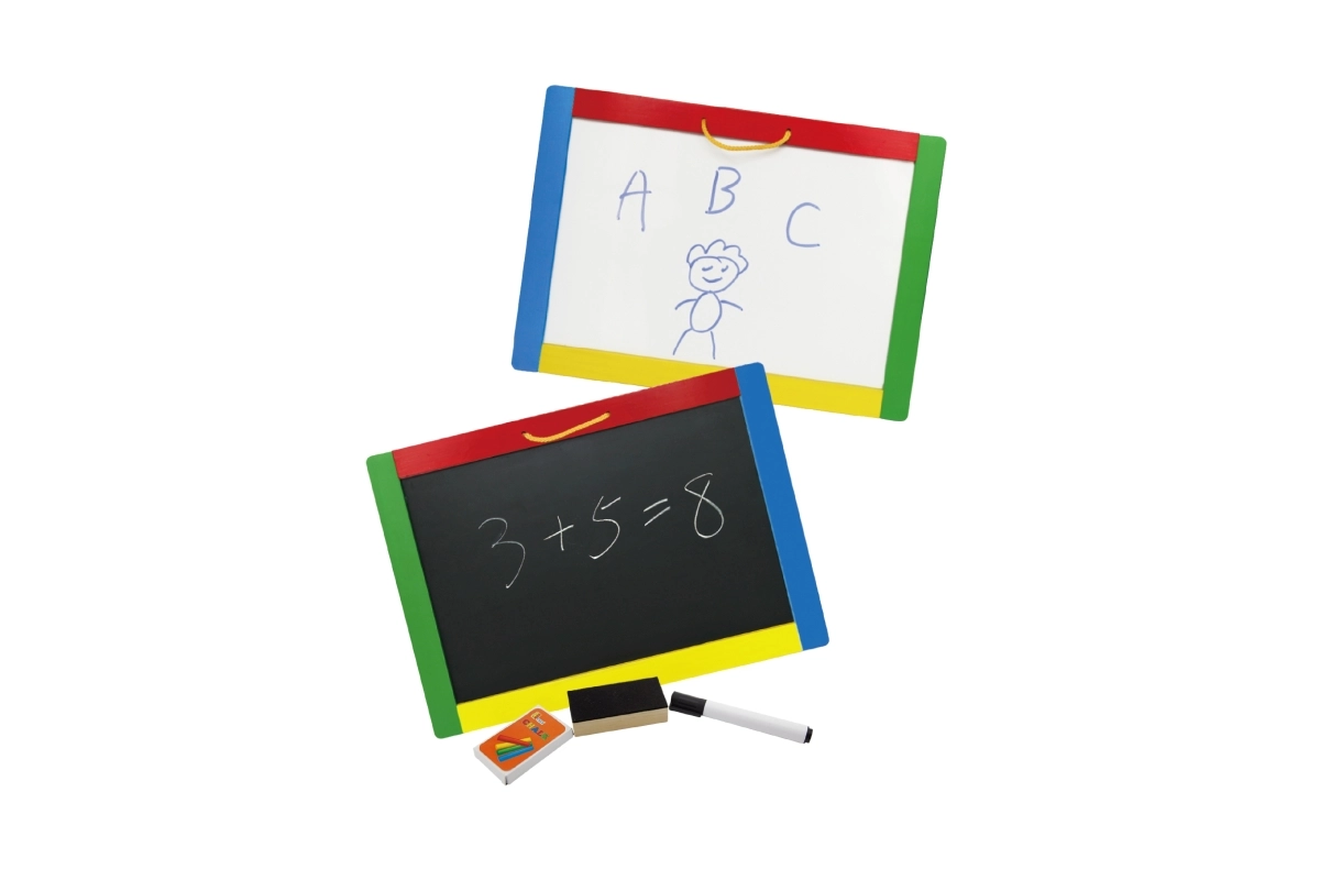 See universaalne tahvel ühendab kaks loovpinda ühes – must magnetiline pool kriitidele ja valge kuivkustutatav pool markerile. Lapsed saavad kirjutada, joonistada ning harjutada tähti ja numbreid; mustale poolele on lisaks lihtne kinnitada magneteid. Pakendis on kõik kohe kasutamiseks valmis: 4 kriiti, kuivkustutatav marker ja käsn.