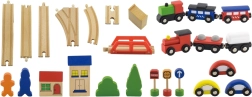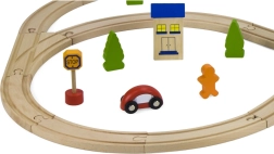 - Rööpad, 2 × vedur, 4 × vagun, 3 × auto, lisad (märgid, puud, majakesed jm)