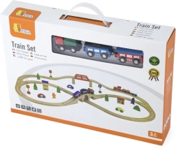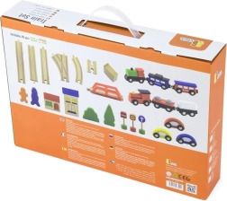 Ehitage oma raudteemaailm! Puidust rongitee kogupikkus ja rööbaste paigutus võimaldavad lastel rajada mitmekesiseid marsruute, ületada sildu ning ühendada transpordi linnaga kaasasolevate autode ja lisade abil. Kvaliteetne puidust viimistlus on vastupidav ja käele meeldiv.