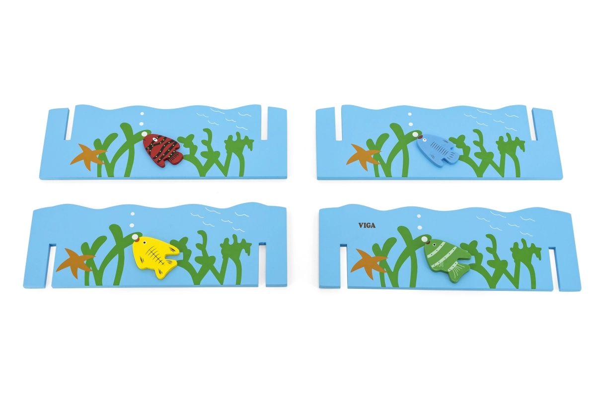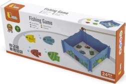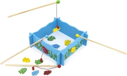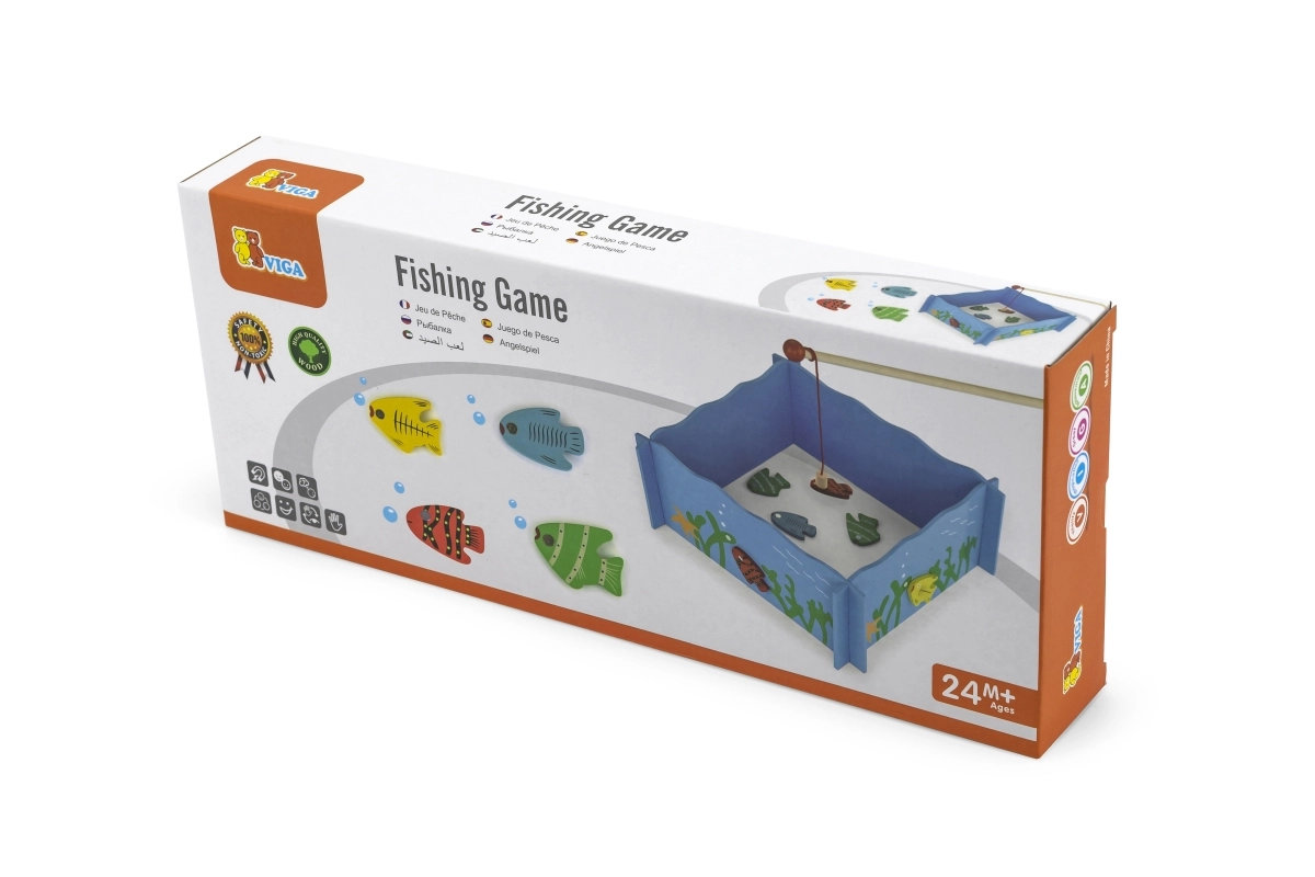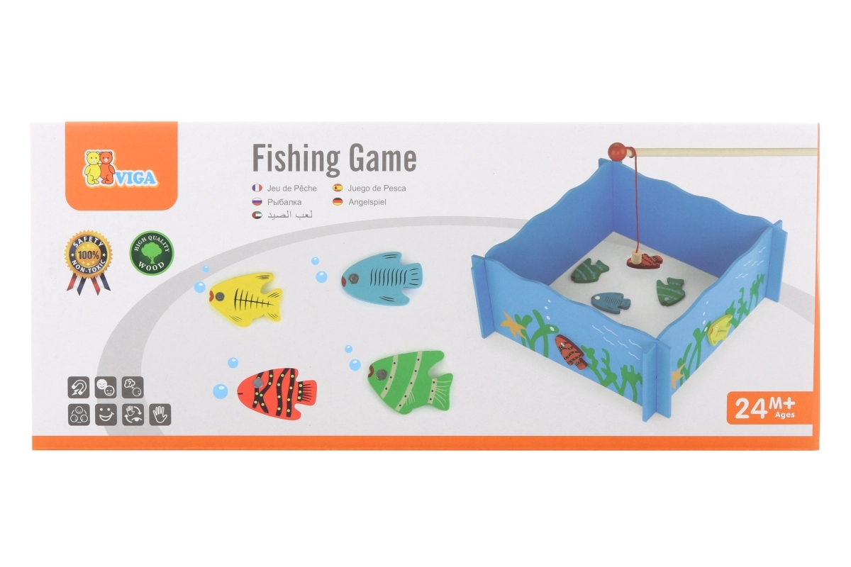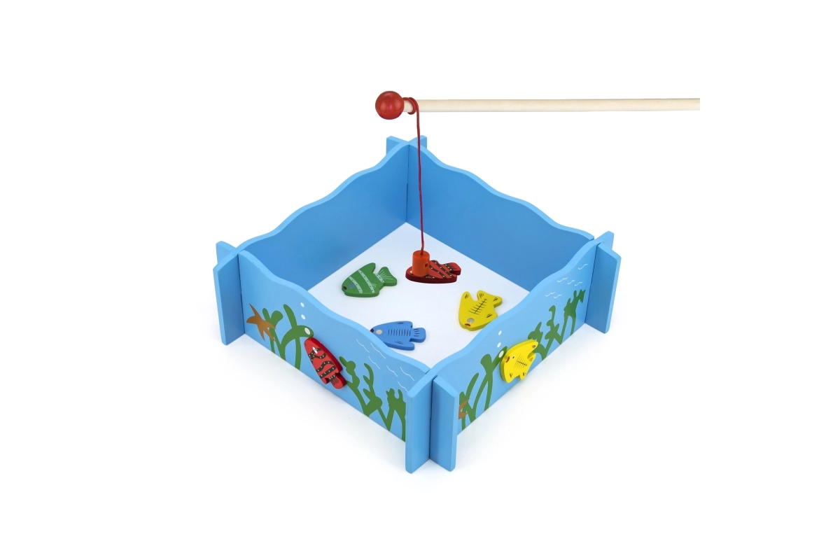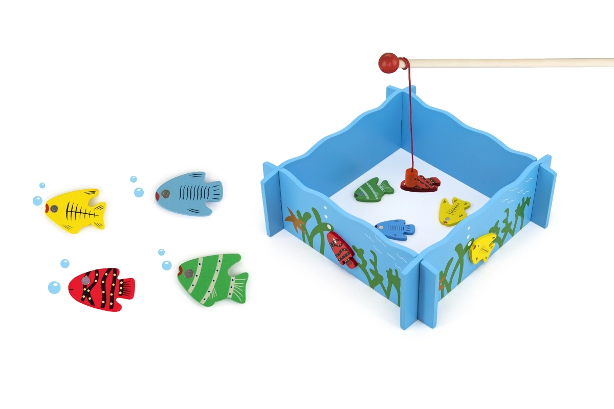 Lõbus ja kvaliteetne puidust magnetmäng Kalapüük arendab peenmotoorikat, silma–käe koordineerimist ja kannatlikkust alates 24 kuu vanustele lastele. Komplektis on kalatiik, 4 magnetõnge ja 20 värvilist numbritega kalakest õppimiseks ja mänguks.