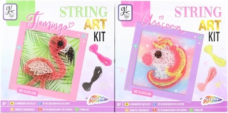 See loovkomplekt võimaldab sul luua oma lõngapilte, mis on suurepärased kaunistused sinu tuppa. Pakendis on vahtplastist alus, raam, väikesed naelad, 4 eri värvi puuvillased lõngad ja muud vajalikud tarvikud piltide kokkupanekuks.