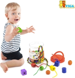 See eriti suurte puidust helmeste komplekt on suurepärane mänguasi laste varaseks arenguks. Tänu silmapaistvatele värvidele ja erinevatele kujunditele harjutavad lapsed sorteerimist, loendamist ja loovust, samal ajal tugevdades haaret ja keskendumist. Helmeste mõõt on kohandatud väikestele kätele, mistõttu on läbilükkimine lihtne ja lõbus.