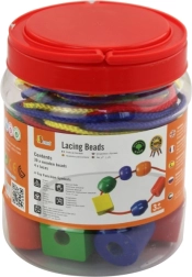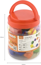 Suured puidust helmed praktilises topsis koos värviliste paeltega rõõmustavad iga 3+ last. Tänu eriti suurele mõõdule on neid lihtne haarata ja turvaliselt lükkida, mis arendab peenmotoorikat, käe-silma koostööd ja värvide ning kujundite tundmist. Komplektis on 30 helmest ja 4 nööri lõputuks loomisrõõmuks.