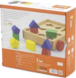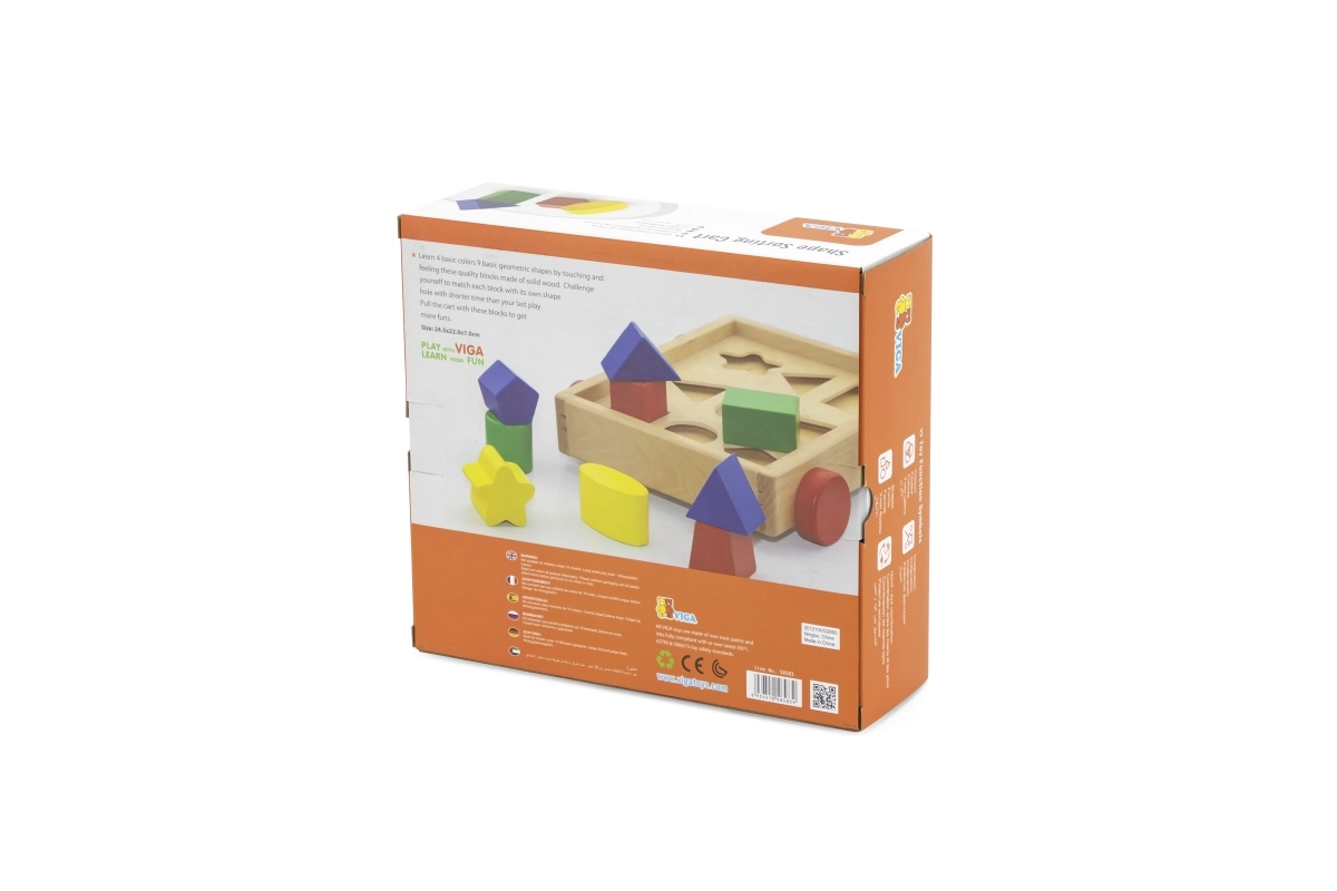 Puidust kujundipusle - käru pakub lastele lõbusat ja harivat viisi peenmotoorika parandamiseks. Komplekti kuulub 24,5 × 22 × 7 cm mõõtmetega käru ning 9 eri värvi klotsi erinevates kujudes, mis tuleb õigesti avausse paigutada. See käru motiveerib lapsi mängima, samal ajal õppides kujundite äratundmist.