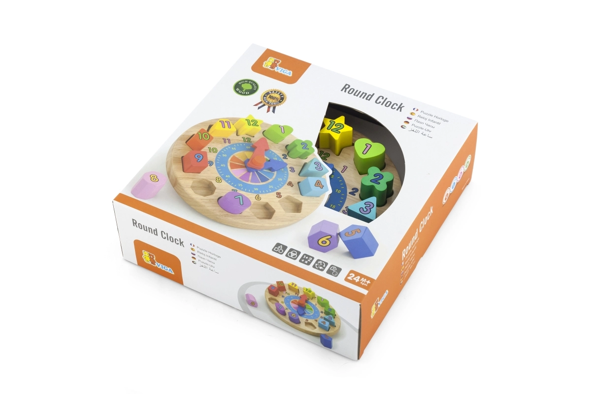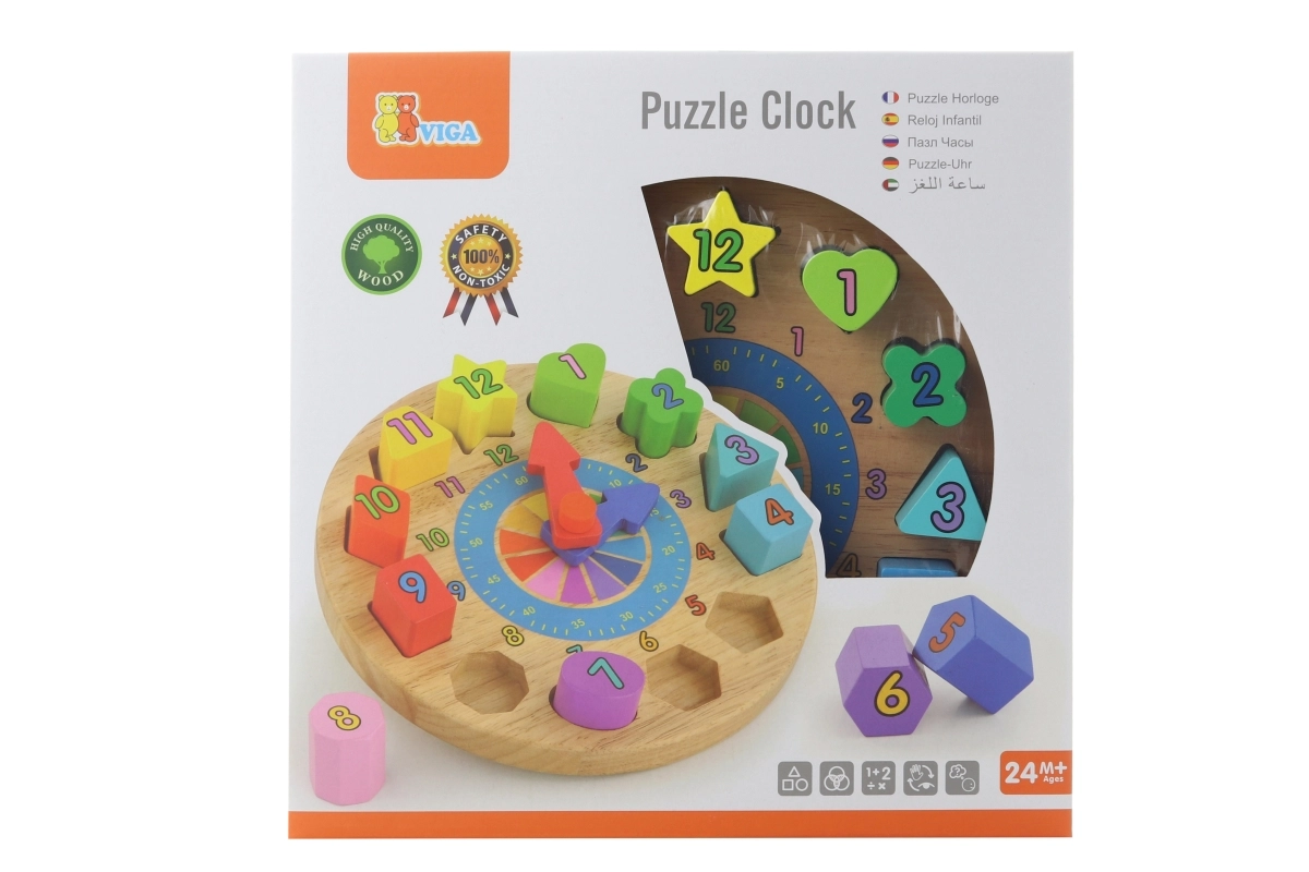 Lõbusad ja harivad puidust kellad aitavad väikestel õppida tundma aega, värve ja kujundeid. Komplektis on 12 värvilist numbritega pusletükki, mis arendavad peenmotoorikat, loogikat ja käe-silma koordinatsiooni. Ideaalne mänguasi lastele alates 24. elukuust.