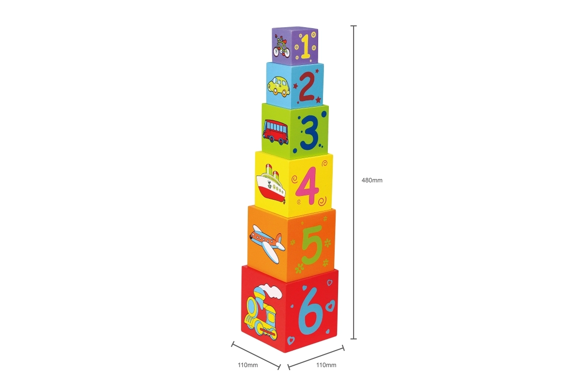 Puidust ehitusklotsid pakuvad teie lastele tunde lusti ja õppimist. Komplektis on 6 klotsi, mida saab laduda püramiidiks, arendades koordinatsiooni ja ruumitaju.
