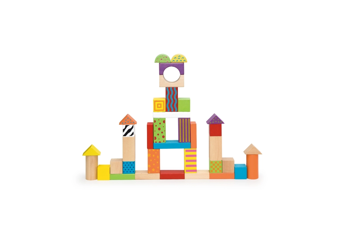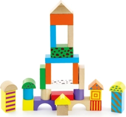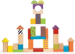 Erinevad kujundid – klotsid, silindrid, kaared ja katused – ergutavad fantaasiat ning toetavad peenmotoorikat ja ruumilist ettekujutust.