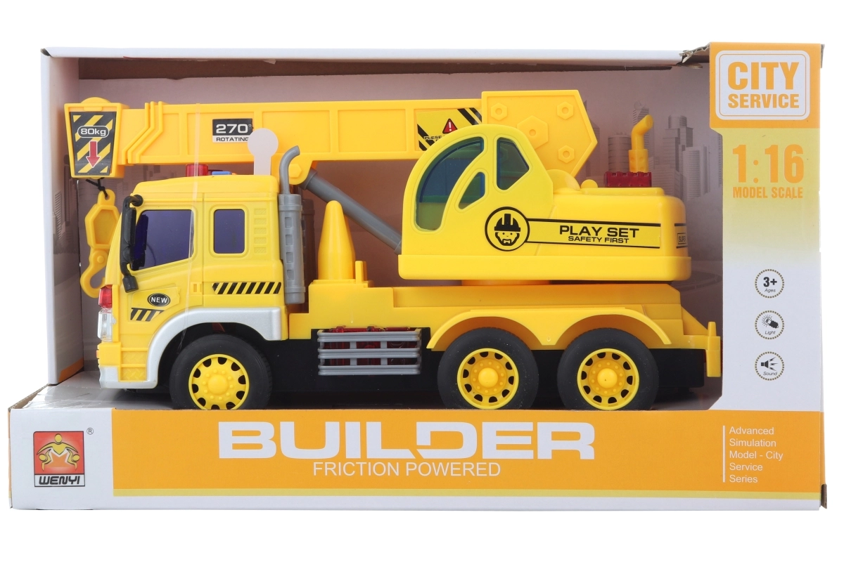 Patareidega autokraana on suurepärane mänguasi alates 3. eluaastast, mis süttib ja teeb helisid nuppude vajutamisel.