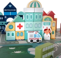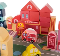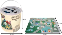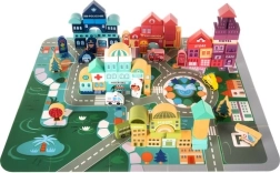 Kruzzel puidust klotsid annavad lastele võimaluse arendada loovust ning samal ajal õppida linnakeskkonna kohta. Komplekti kuulub värviline mängumatt, mis kujutab teede ja hoonetega linna ning pakub suurepäraseid võimalusi fantaasiamänguks.